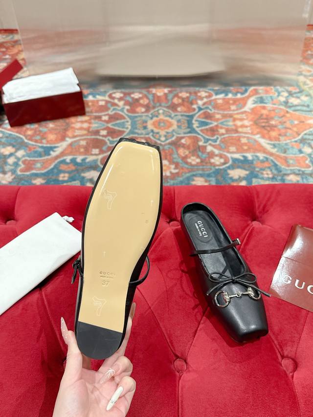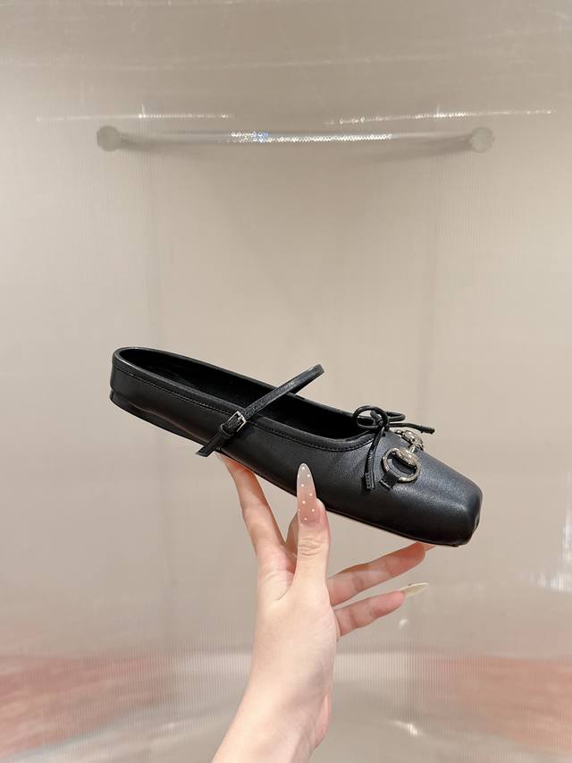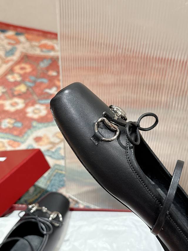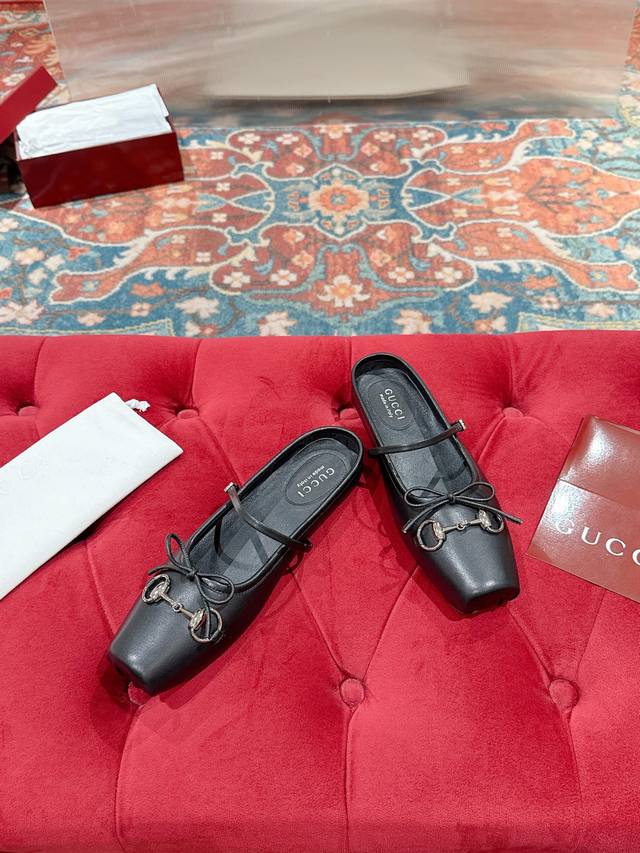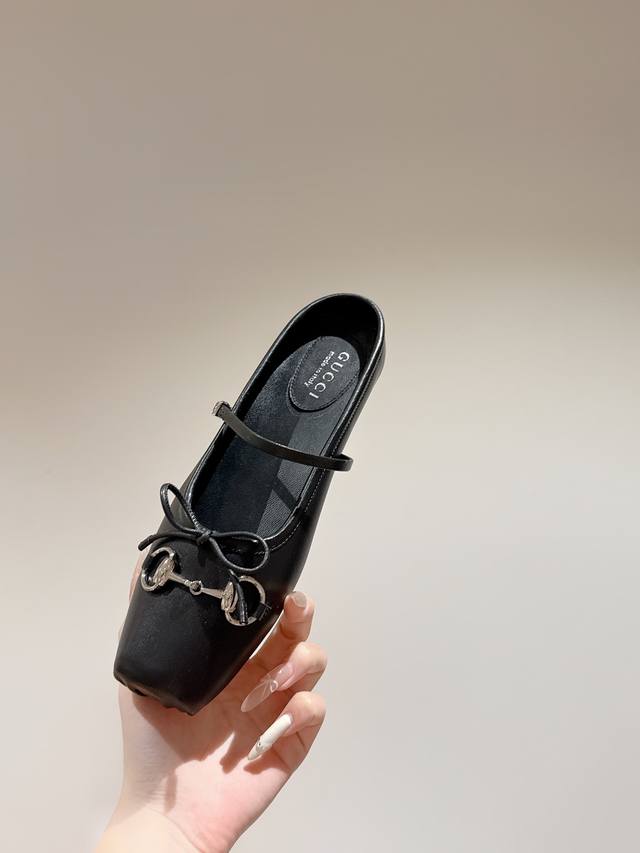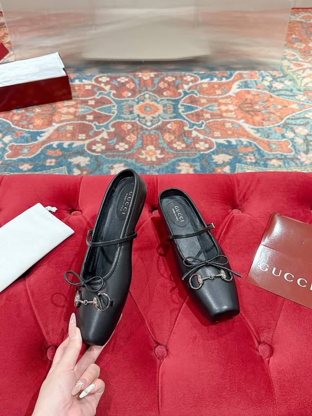 Gucci 2025早春25系列新品平底芭蕾鞋马衔扣新款小方头单鞋,鞋头方形设计搭配雅致的蝴蝶结细节,经典精致优雅俏皮时髦平底鞋,打造出色的穿着体验 面料:原版