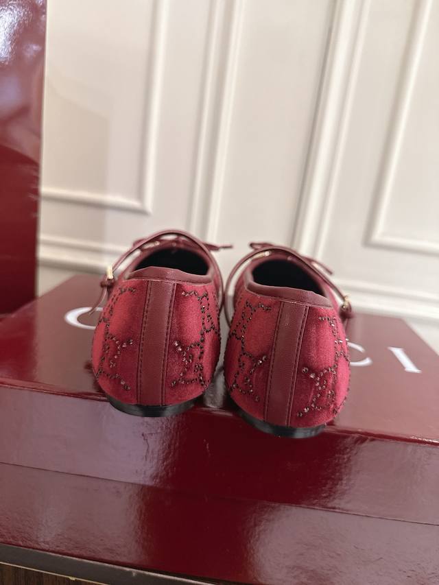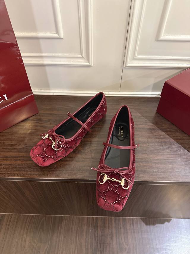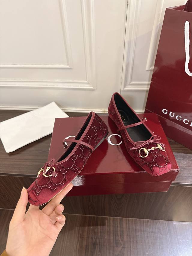 / Gucci Horsebit系列天鹅绒Gg水钻芭蕾舞鞋 DDD 这款经典马衔扣芭蕾平底鞋,匠心致意传统芭蕾舞鞋廓形。这款鞋履甄选柔软天鹅绒材质,点缀Gg仿水晶图