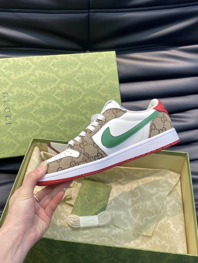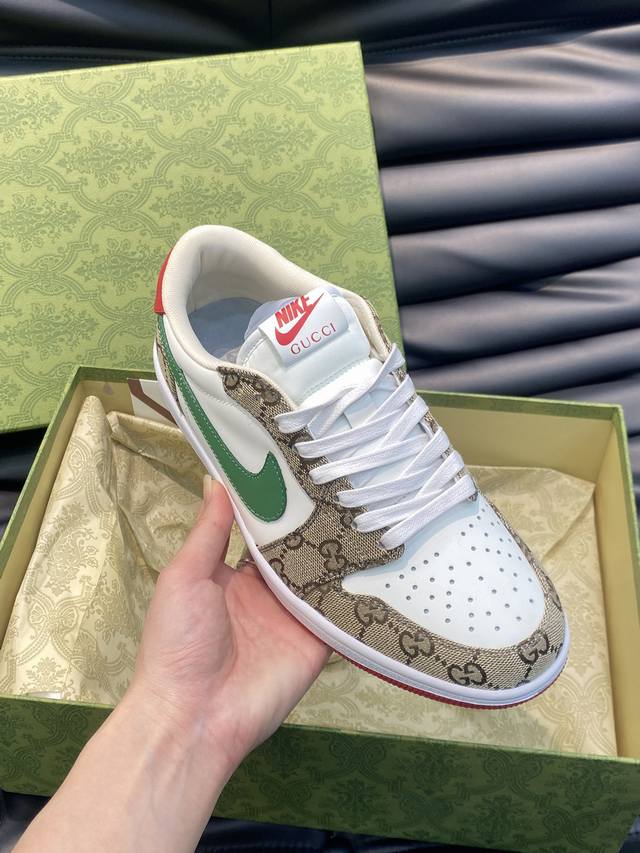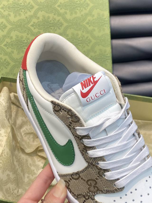 FFF Gucc*X Nike联名低帮休闲运动鞋,采用头层牛皮拼接原版帆布精心制作,侧身联名印花Logo装饰,双色橡胶鞋底、后侧鞋口和鞋跟处均带有品牌标志性细节,提升格调。时尚百搭,可为各式造型增光添彩。塑造独具动感活力与摩登气息的精致设计 DDD Size:38-45 DDD