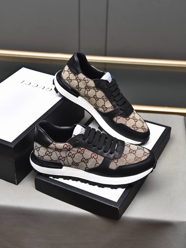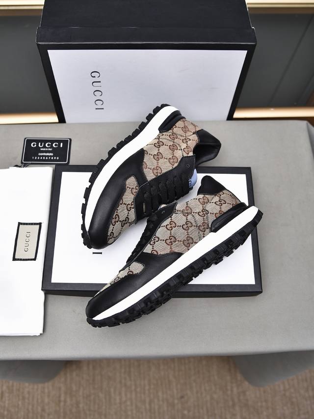 Gucci 古奇 新款男鞋高端品牌,最新時尚休闲男鞋,潮流百搭之款,轻松运动风,鞋面意大利进口头层牛皮 真皮内里...