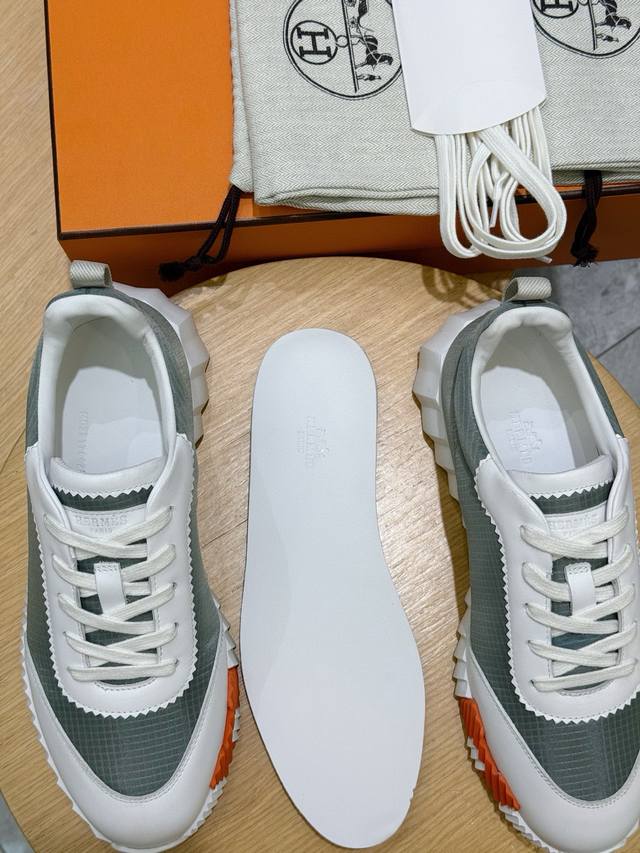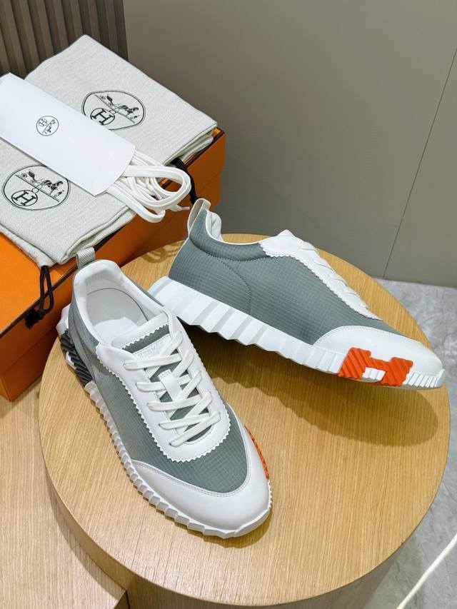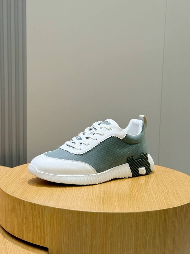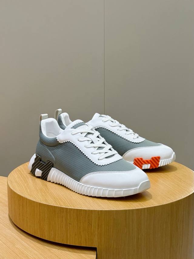 Hermes Bouning男士运动鞋-牛皮中底 原版购入,1:1复刻,想要顶级的这就是你的专属 麂皮山羊皮和小牛皮运动鞋。 轻盈鞋底装饰撞色图案,打造百搭时尚