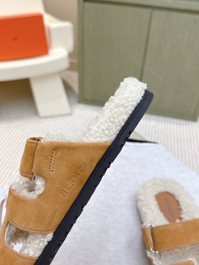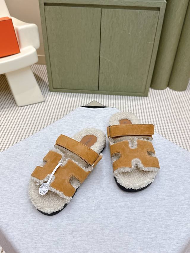 东莞代购级 |D1126 官网同步盒包装 Hermes 一波惊喜爱马仕毛拖妥妥的时尚款顶级出品轻奢 Hermes泰迪毛拖真的软软糯糯超美....... 初冬的第一双毛拖,真的穿起太舒服了,像踩在地毯上完全不想脱下来,俗称二舅拖鞋它来啦 带来极度舒适的一天.... 材质:进口麂皮 进口牛皮 内里:进口羊羔毛 Tpu防滑大底 Size:#35-40 40订做不退换