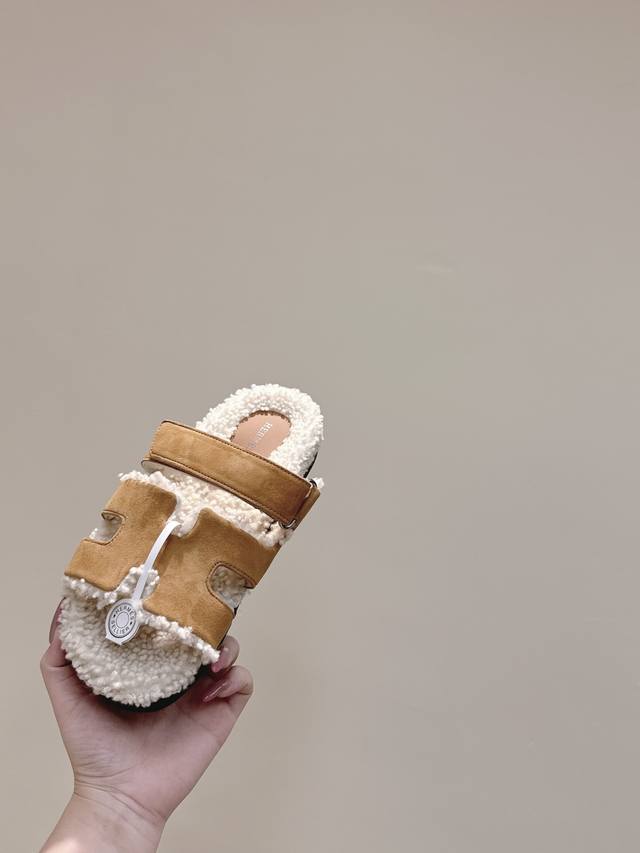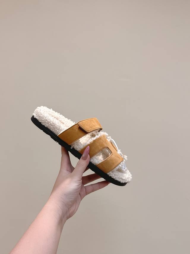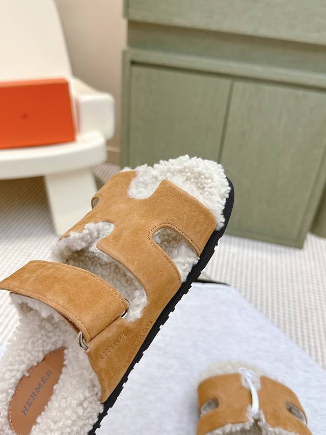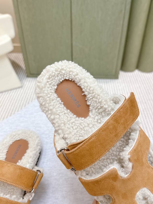代购级 爱马仕Hermes经典泰迪毛拖,各大网咖主推款,顶级品质 蓬松柔软舒适羊羔毛 羊毛 真皮大底 Size:#35-42 41 42订做不退换
