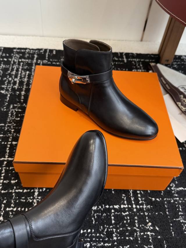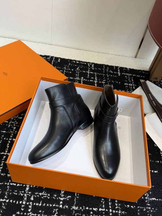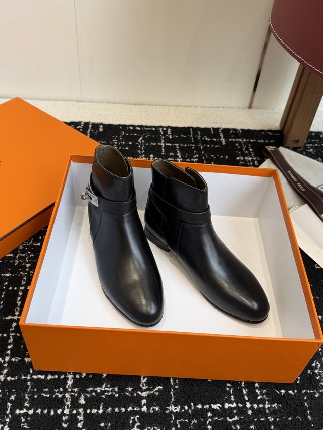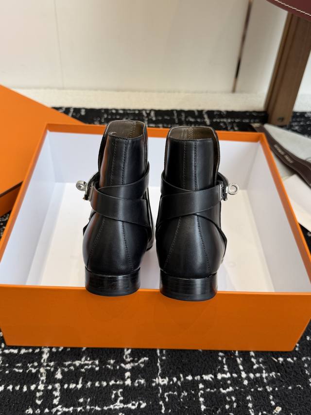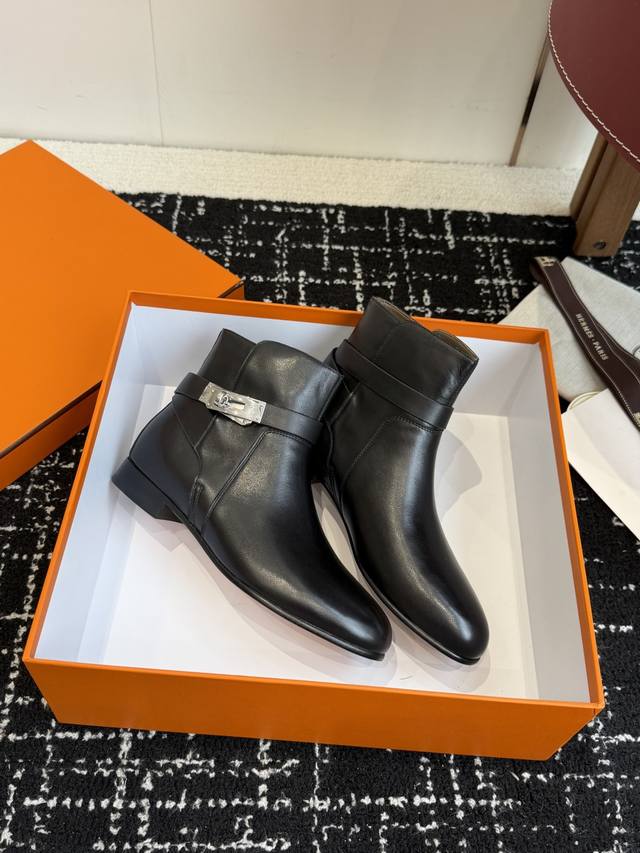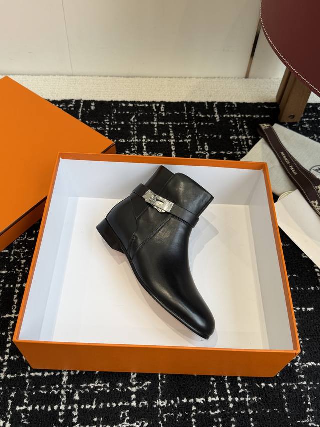 东莞代购级 DDD Hermes 爱马仕 25Fw秋冬新款 H家 Neo及踝靴系列经典Kelly扣皮面短靴侧拉链高跟短靴 DDD 每一处细节都彰显非凡品质。标志性Kelly扣点缀于靴面 闪耀金属光泽,流畅线条 精致尽显奢华质感。延续经典传奇 是爱马仕品味象征。无论是都市街道还是户外漫步都稳健自在,靴筒高度恰到好处 贴合脚踝。修饰腿部线条 显腿瘦显腿长,搭配牛仔裤 干练随性;搭配连衣裙 优雅迷人轻松适配各种风格服装 是四季百搭时尚单品。 DDD 鞋面:进口小牛皮 内里垫脚:牛皮 鞋底:意大利双层真皮大底 D