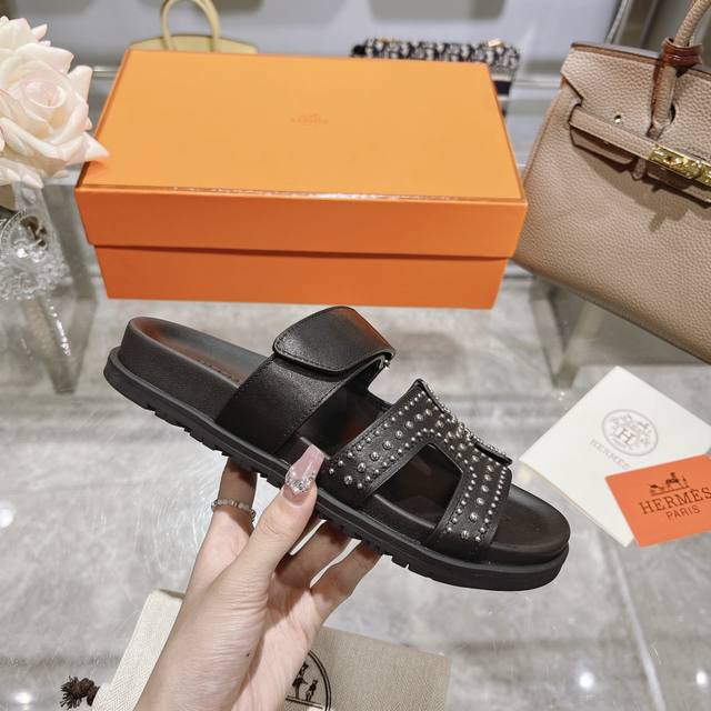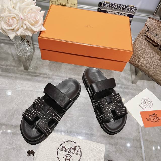 二舅拖全系列』 出厂价Pp铆钉女款 男款360Herme*25春夏新款不多解释了,买过的都知道 原版牛皮面料 Tpu防滑大底 女款35-39 40. 45.46