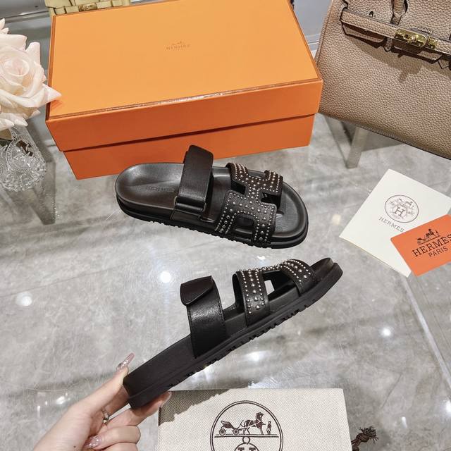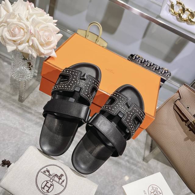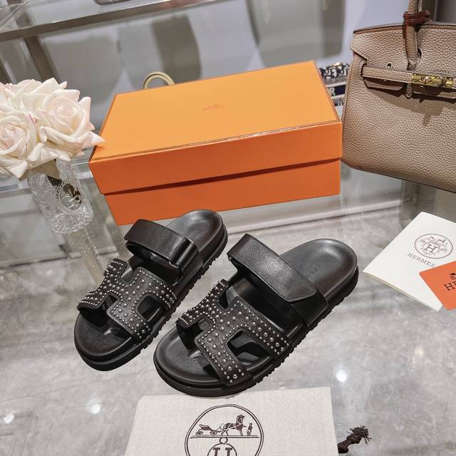 / 二舅拖全系列』 出厂价Pp铆钉女款 男款360Herme*25春夏新款不多解释了,买过的都知道 原版牛皮面料 Tpu防滑大底 女款35-39 40. 45.46
