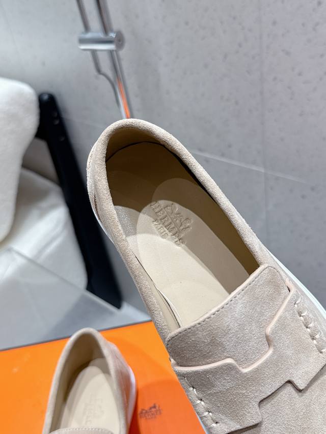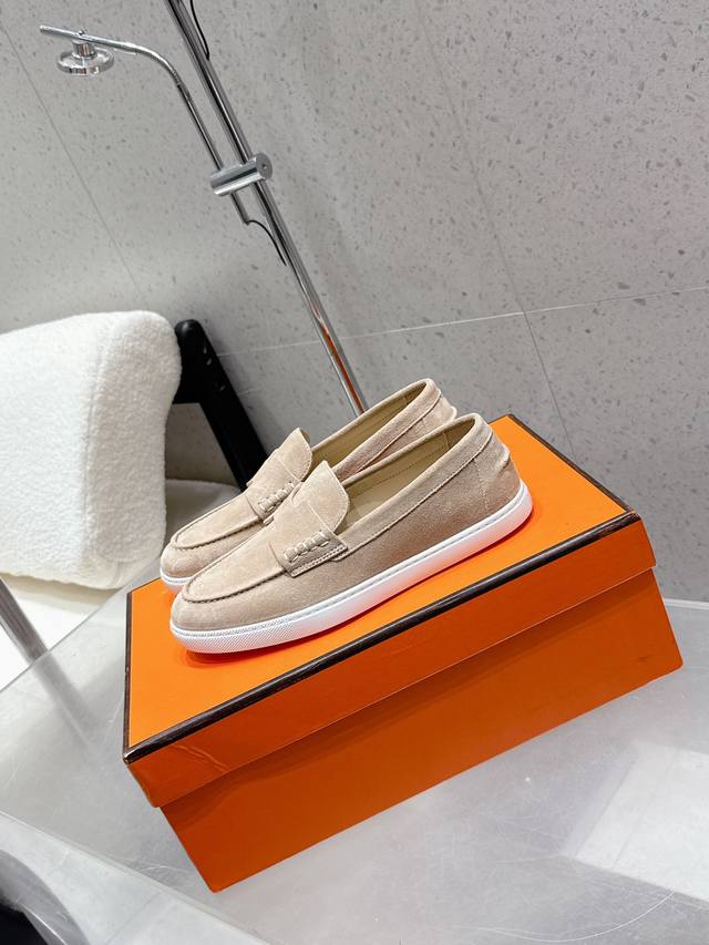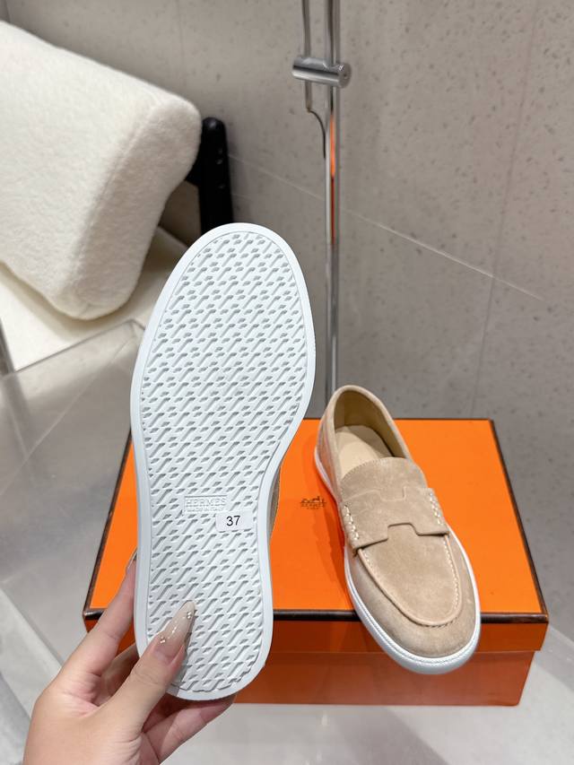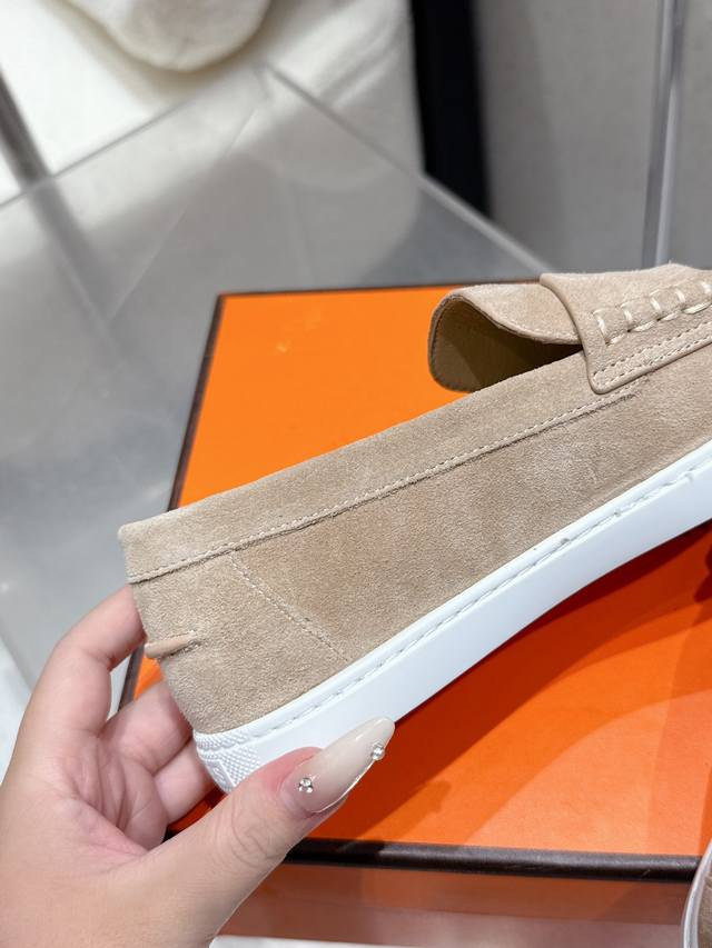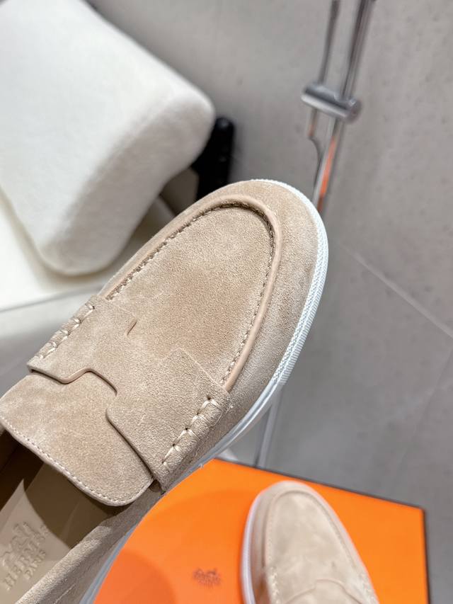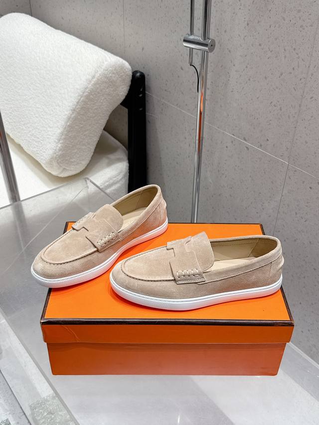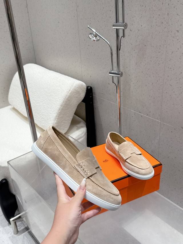 代购级 男+10 Hermes|爱马仕2025Ss休闲情侣款一脚蹬乐福鞋 爱马仕经典H 情侣款 乐福鞋 经久不衰 休闲 简约风格免系带休闲运动鞋...