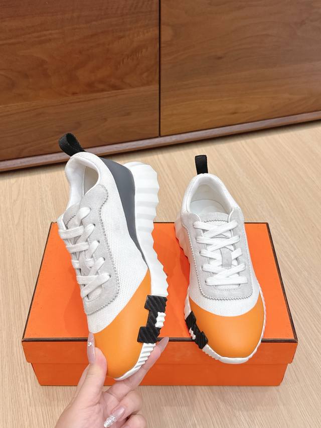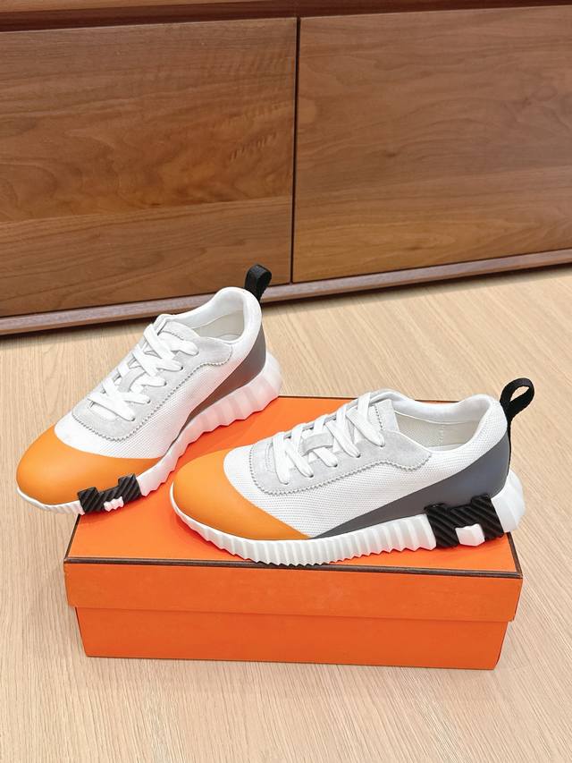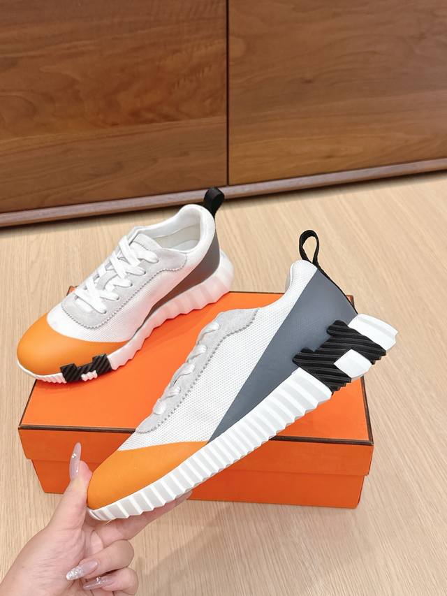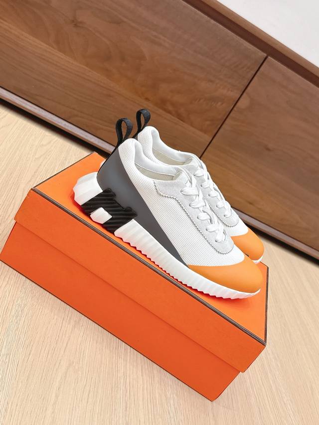 男+50 hermes 顶级版本# 24Ss休闲运动鞋 麂皮山羊皮运动鞋装饰撞色图案和标志性 H 细节 配送专柜精美包装 面料 麂皮+牛皮 内里...