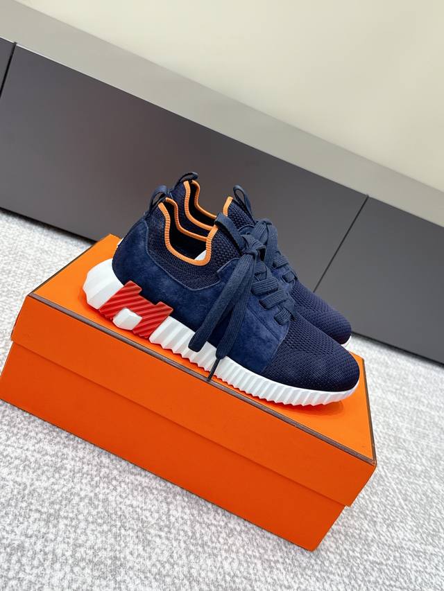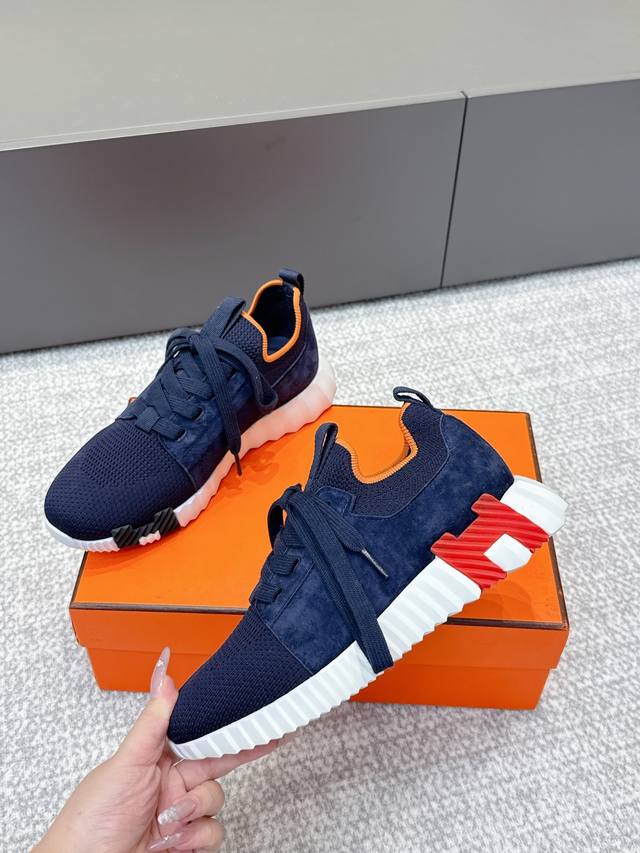 / 代购级 男+10 Hermes 爱马仕 25 Bouncing 情侣 运动 休闲鞋 爱马仕最舒服的鞋,没有之1,上脚特轻又巨好看,逛街暴走都不会累牛皮+针织 手
