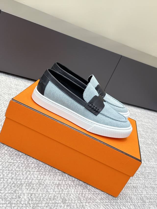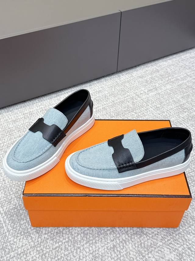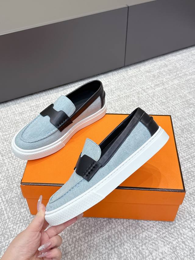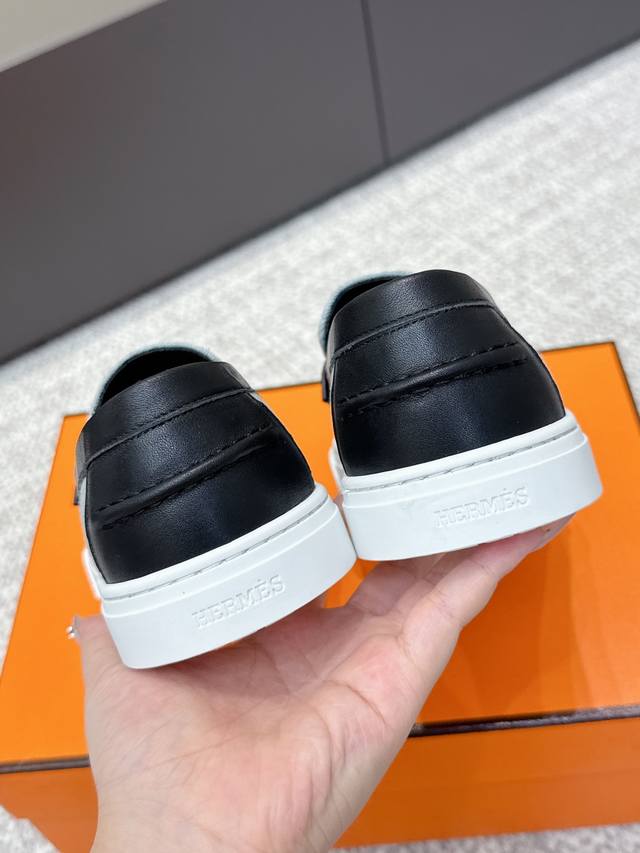 代购级 +10 Hermes|爱马仕2025Ss休闲情侣款一脚蹬乐福鞋 爱马仕经典H 情侣款 乐福鞋 经久不衰 休闲 简约风格免系带休闲运动鞋 舒适 休闲 百搭