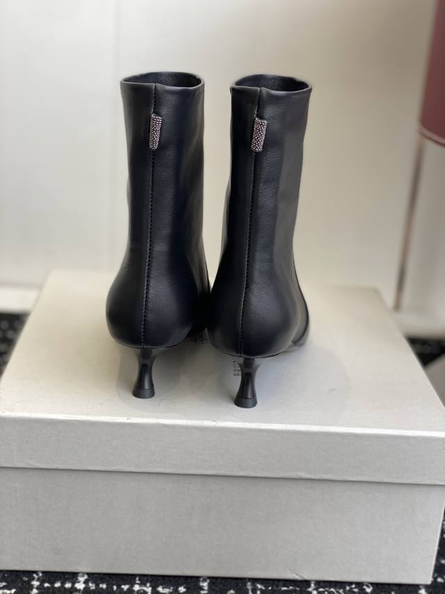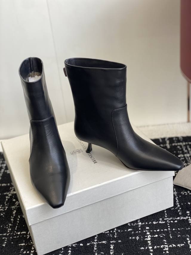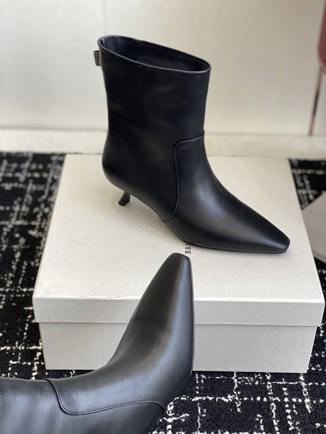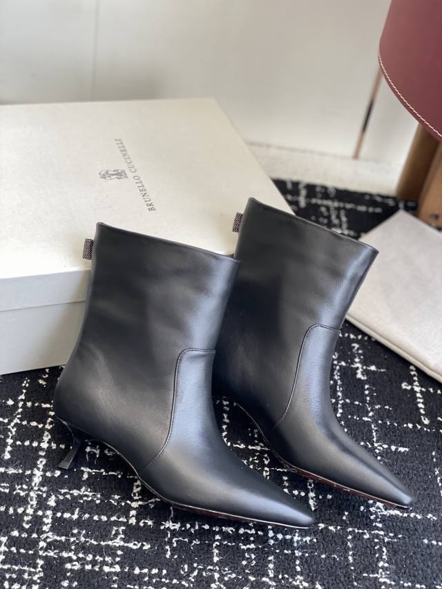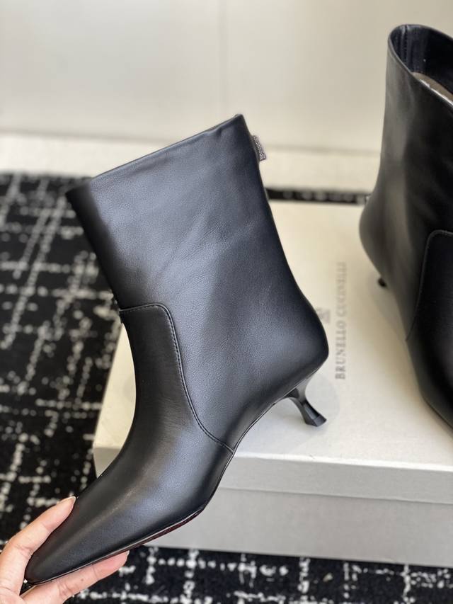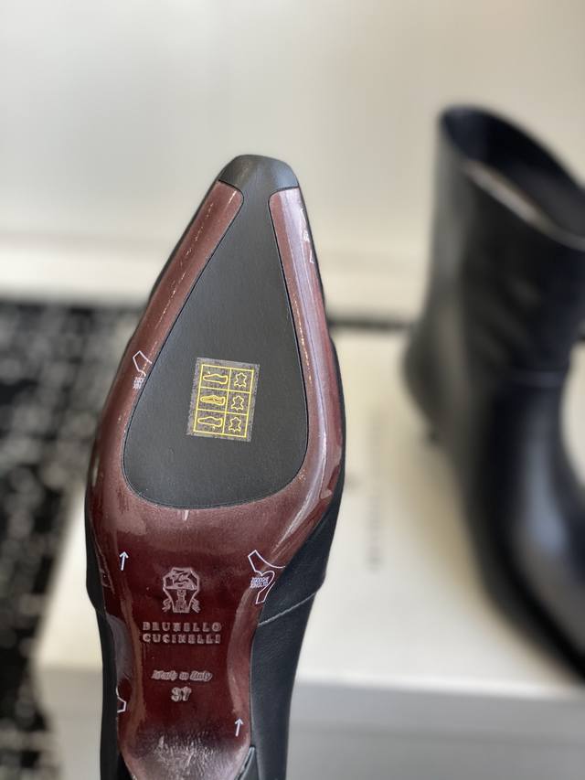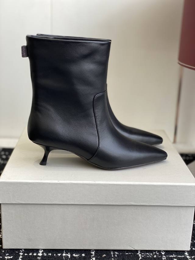 代购级 2025最新款Brunellocucinelli细跟短靴,实物比官网图好看一万倍!!Bc你们自己了解下,这个牌子是全球顶级的羊绒品牌之一。是顶奢品牌;是被称为山羊绒之王的一个牌子,是爱马仕都从这个牌子采购羊绒。Lp在Bc面前都是稍逊色。 尖头高跟短靴界的 显瘦神器 来啦! 独家版型,尖头不磨脚,靴筒高度刚好卡在脚踝, 露出纤细线条,秒变大长腿,冬天穿它 搭配大衣或者皮衣,都是超级非常有大女主的感觉 划重点:鞋子的 小蛮腰 决定一切! 高跟短靴好不好看,关键就看腰线美不美! 就像美女要有小细腰,高跟
