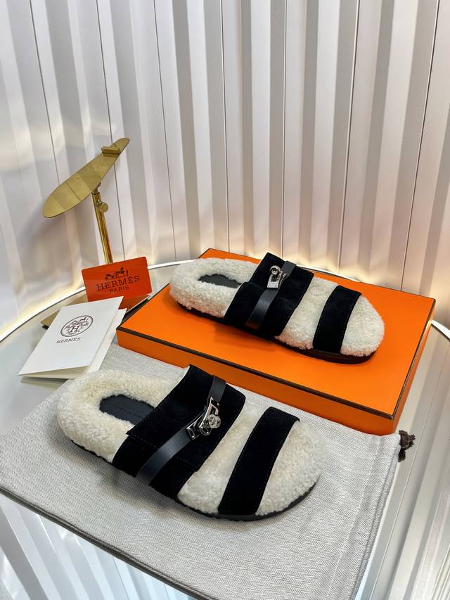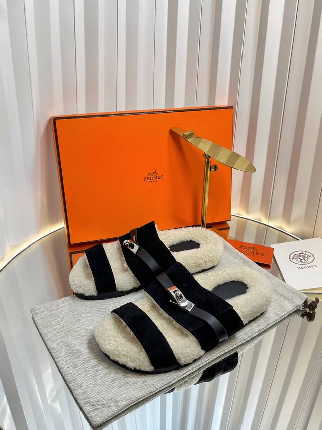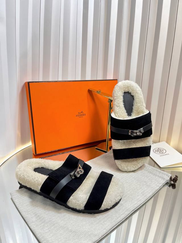 / 代购级 Hermes爱马仕25最新秋冬Kelly毛拖 超级百搭好看时髦 超多明星网红种草 秋冬必备 随意舒适高级感 鞋面:进口羊京 内里:进口羊毛里 垫脚:迸口