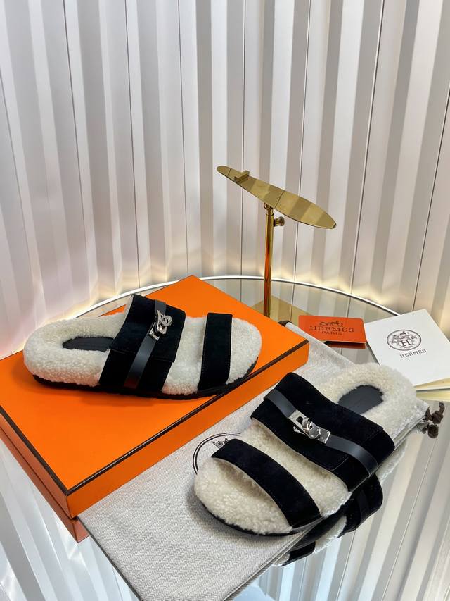代购级 DDD Hermes爱马仕25最新秋冬Kelly毛拖 DDD 超级百搭好看时髦 超多明星网红种草 秋冬必备 DDD 随意舒适高级感 DDD 鞋面:进口羊京 内里:进口羊毛里 垫脚:迸口混种羊皮 大底:Tpu防滑耐磨大底 DDD Size:35-40 40定做不退换 DDD