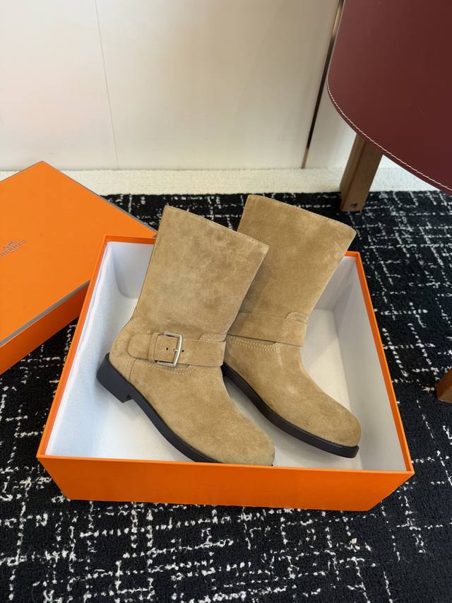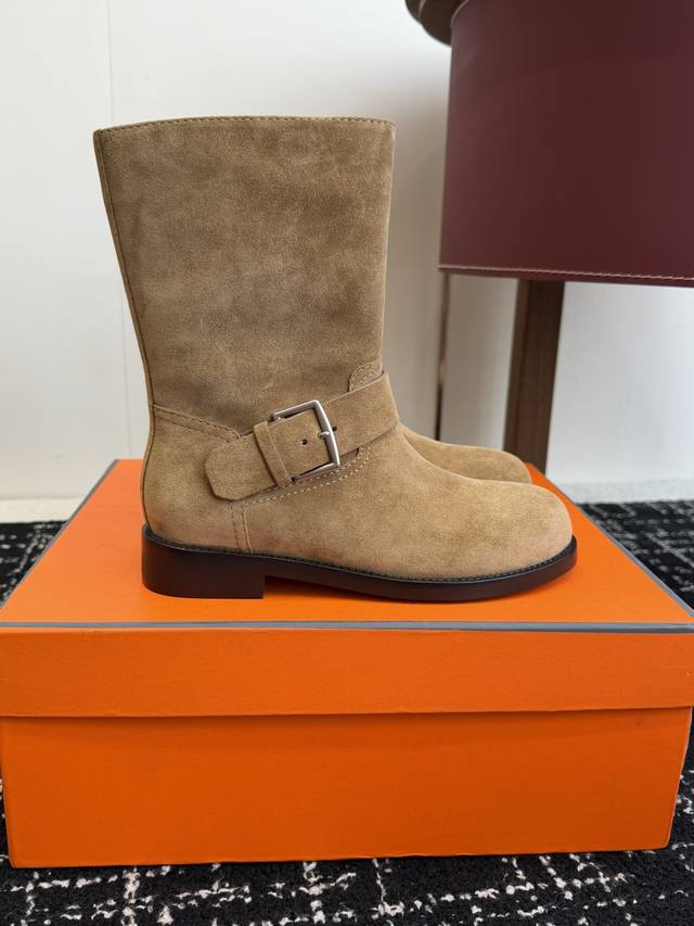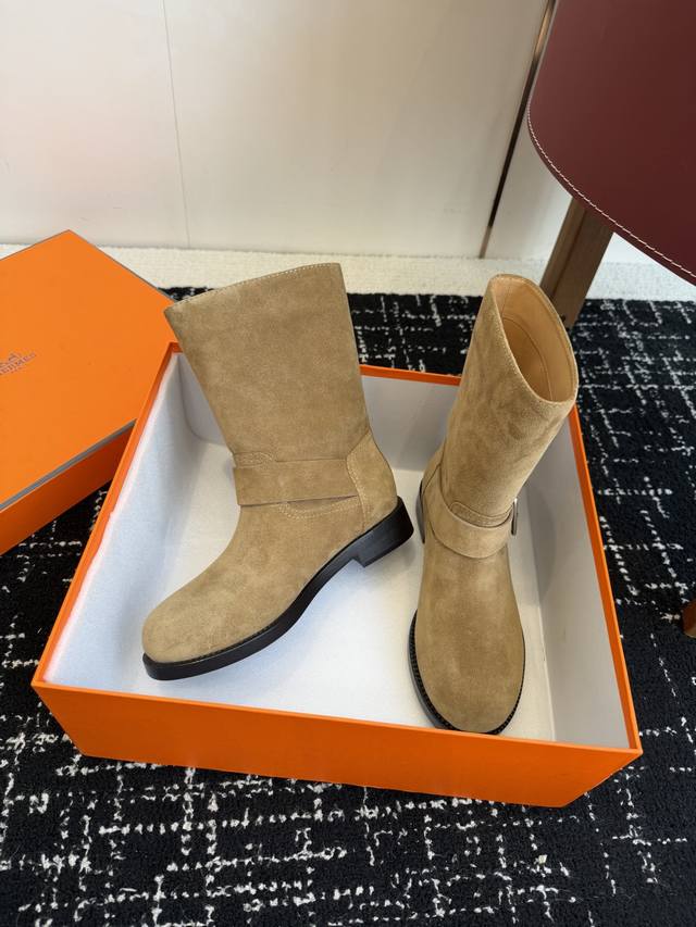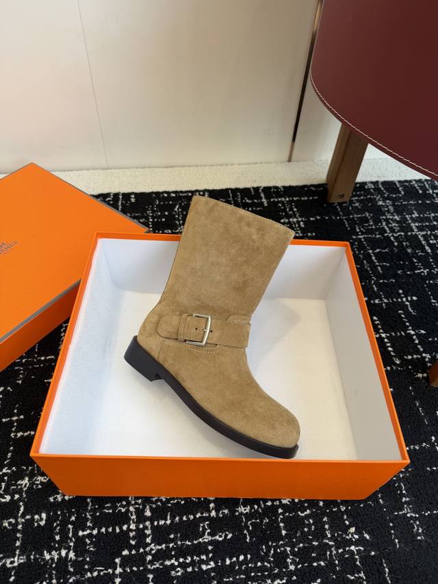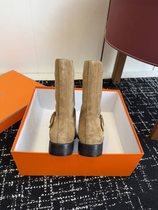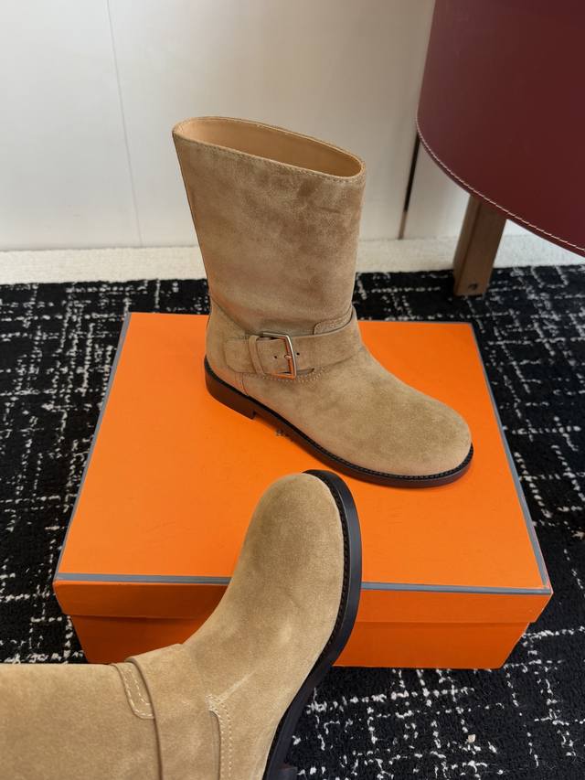 代购级 Hermes 爱马仕秋冬最新款老钱风一脚蹬短靴 专柜超难配货 家靴子的设计风格通常以经典简约为主 这款走秀靴打破传统设计风格 圆头设计风格配上时下最流行