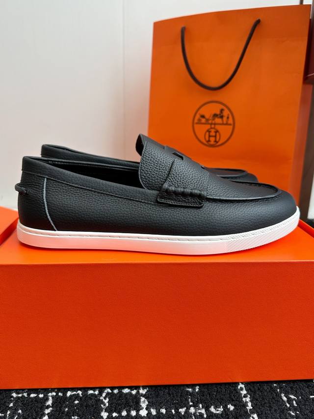 Hermes 爱马仕经典H 情侣款 乐福鞋 经久不衰 休闲 简约风格免系带休闲运动鞋