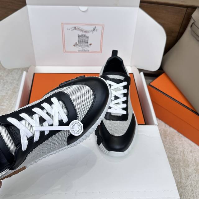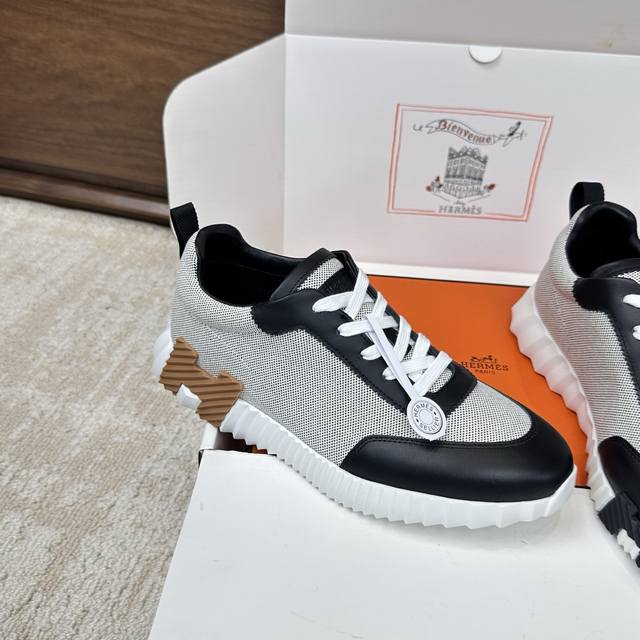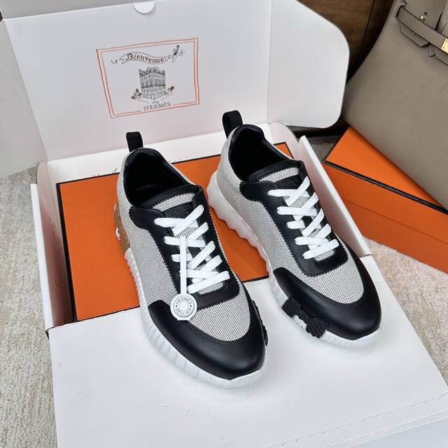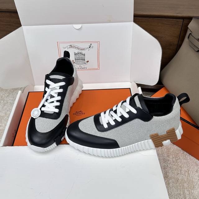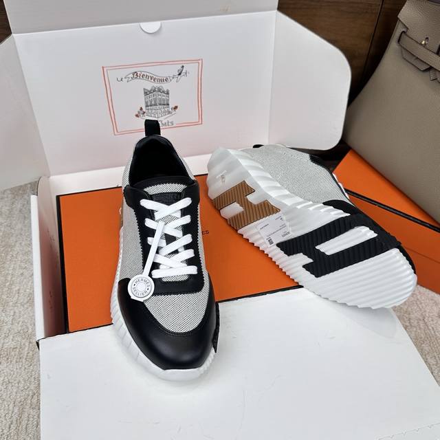 批女 男 Hermes爱马仕官网Bouncing情侣款H系带厚底运动鞋 顶级品质...