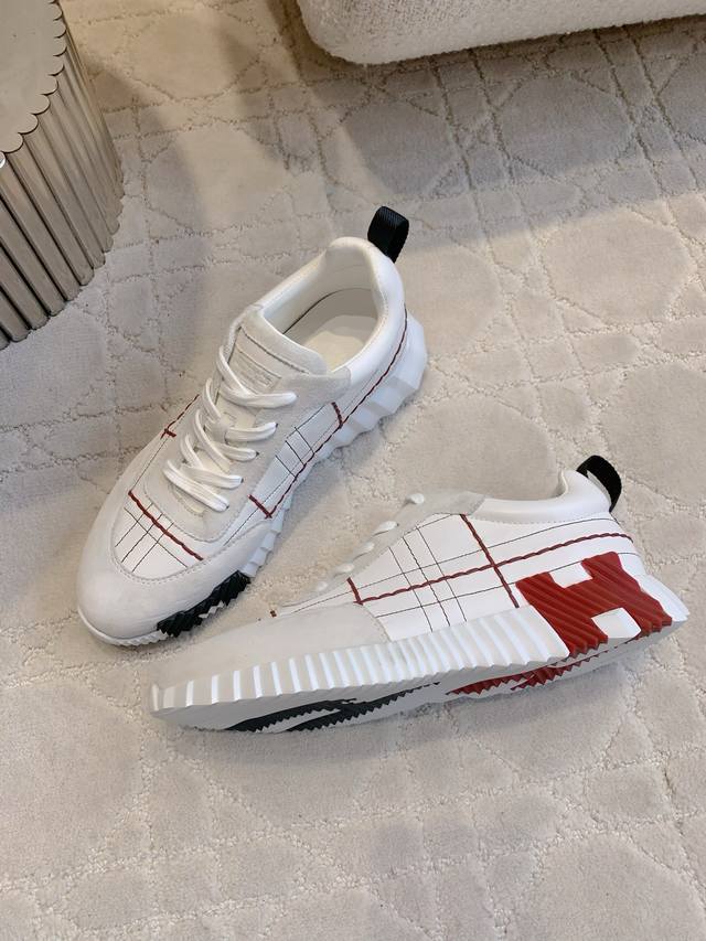 工厂P价P 配全套飞机盒 莞产 顶级版 爱马仕 Hermes 2025春夏经典情侣款 Lift 休闲系带百搭运动鞋 H家厚底时尚风格拼色阿甘跑鞋...
