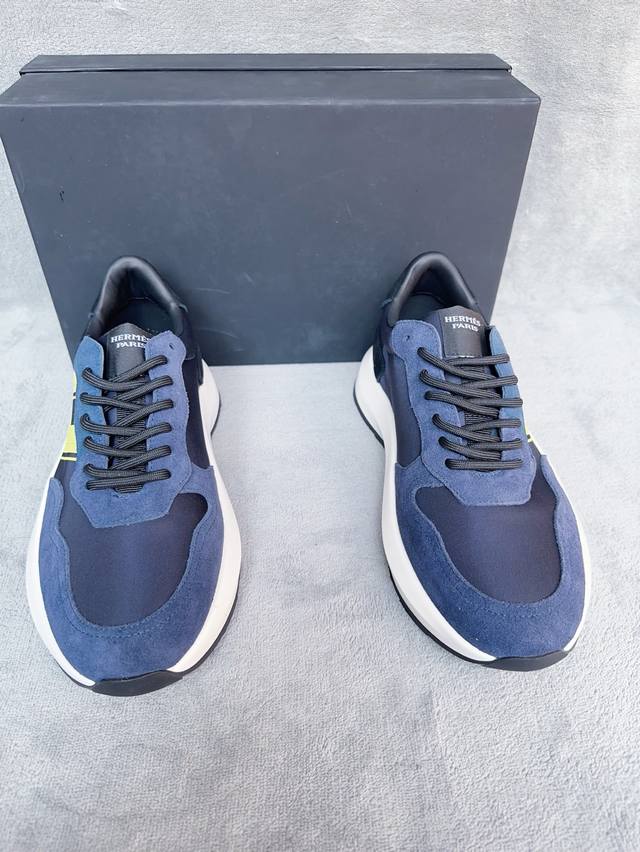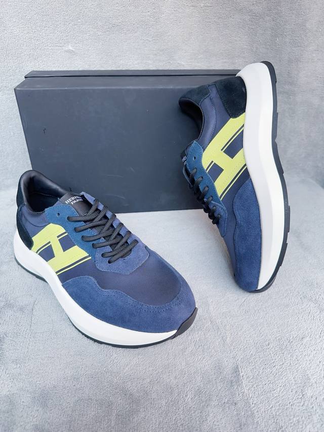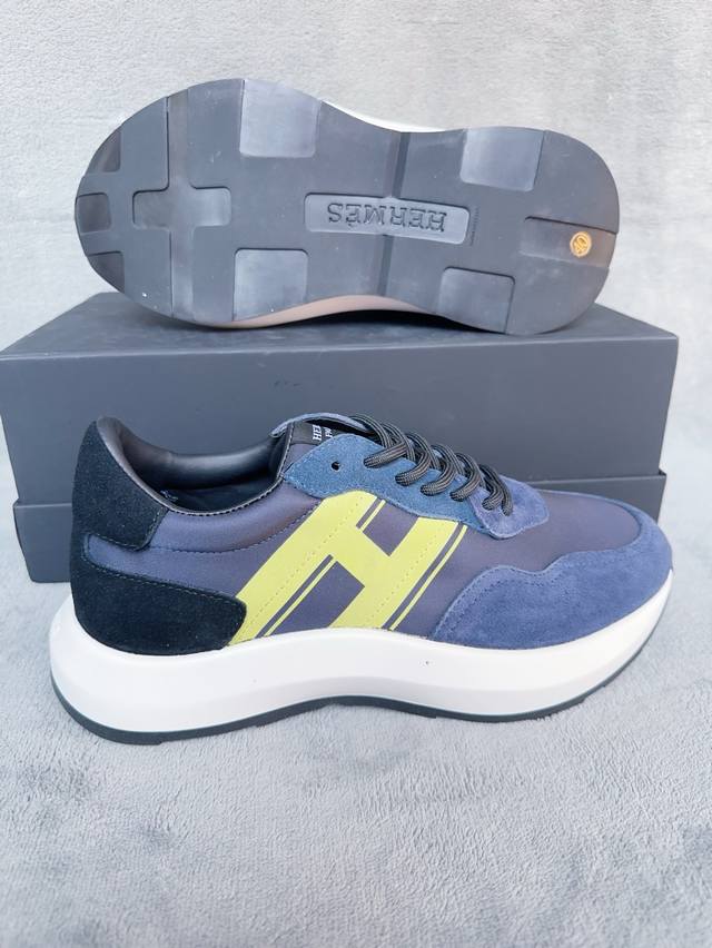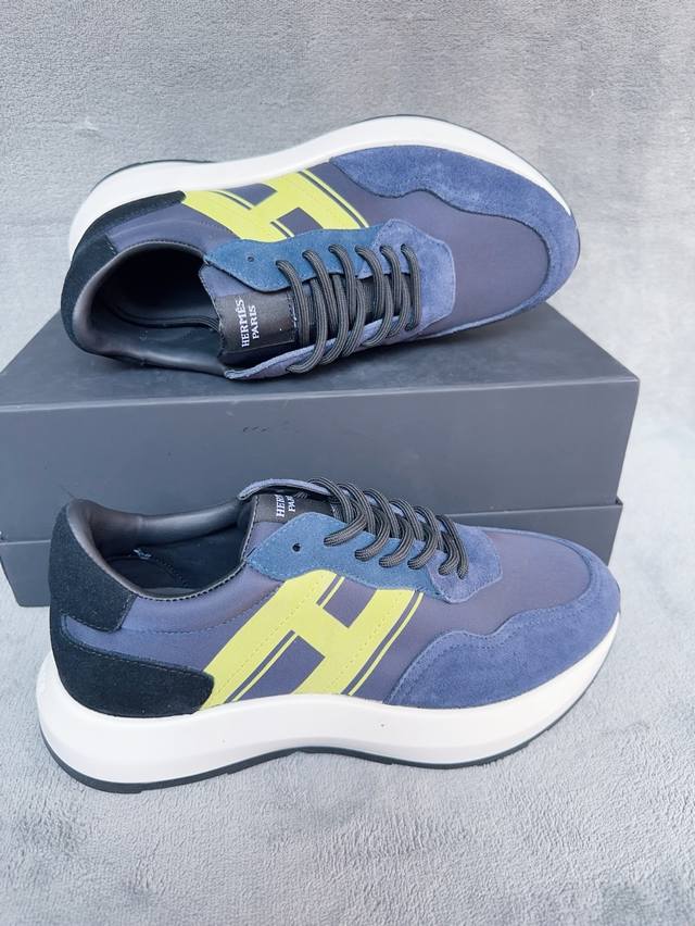 男+10 hermes 顶级版本# 24Ss休闲运动鞋 麂皮山羊皮运动鞋装饰撞色图案和标志性 H 细节 配送专柜精美包装 面料 麂皮+牛皮 内里...