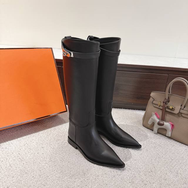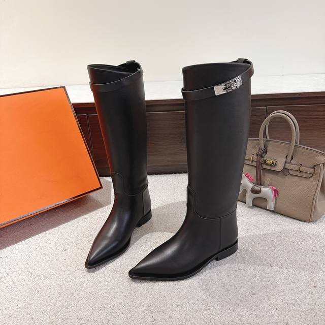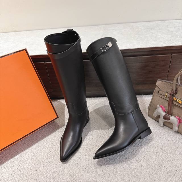 出厂价p Hermes 爱马仕 Lizy 长靴系列 纯手工老师傅打造 小尖头时尚又百搭 经典战靴超级舒服 每个细节都做到极致 原版Swift小牛皮 原版1:1独家私模纯钢Kelly五金扣件 原版私模双层无缝接意大利真皮大底 造价较高 DDD Size:35~42 40.41.42定制不退不换 DDD