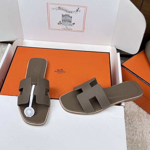 出厂价p Hermes 爱马仕H拖鞋Oran凉鞋系列 时尚又百搭 超级舒服 每个细节都做到极致 原版丝绒面料 原版1:1独家私模鞋面 原版真皮沿条大底 Ddd 包装: 每对鞋均配有两条H家系列丝巾 Ddd Size:34~42 34.40.41.42定制不退不换 DDD