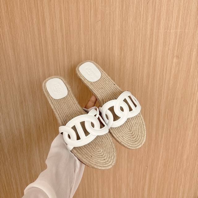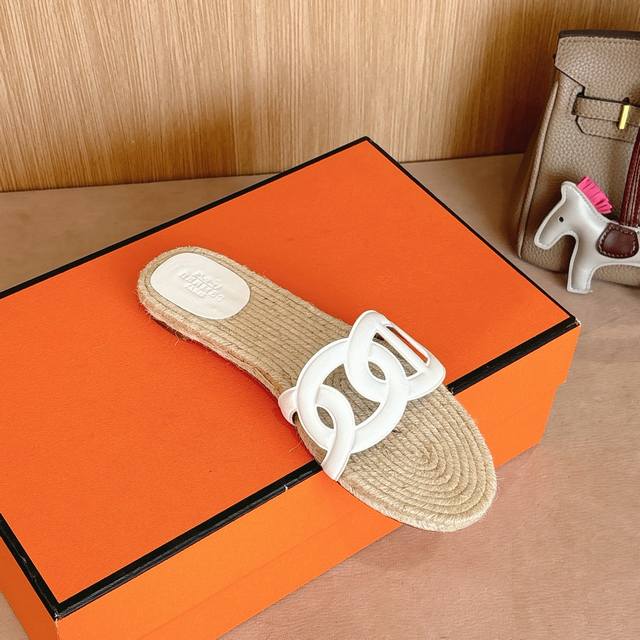 出厂价P Hermes 猪鼻子链条鞋凉鞋系列 时尚又百搭 超级舒服 每个细节都做到极致 面料麂皮 内里混种羊皮 独家开发猪鼻子链条模具和草编大底大底:原版真皮大