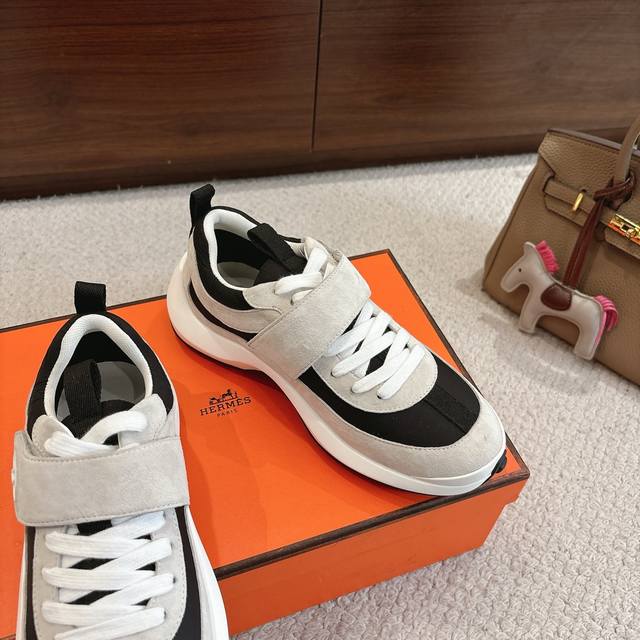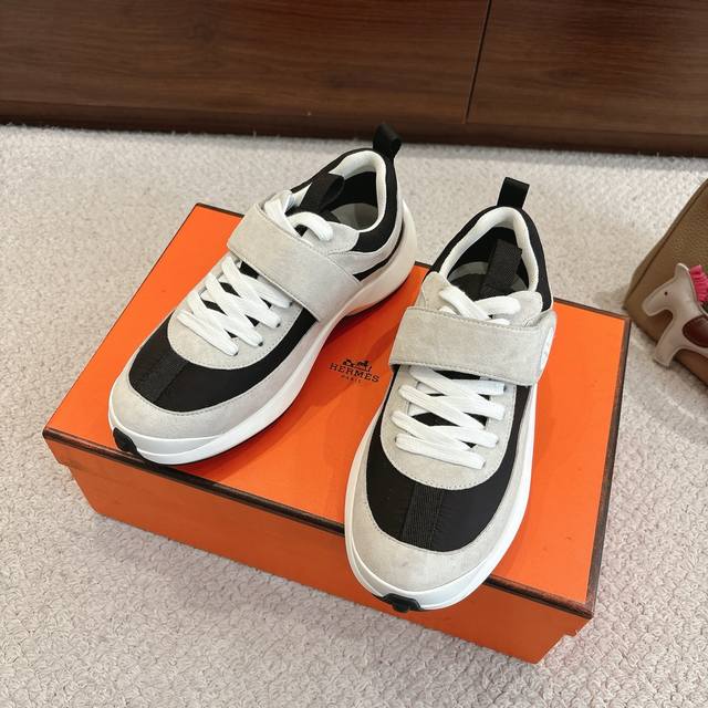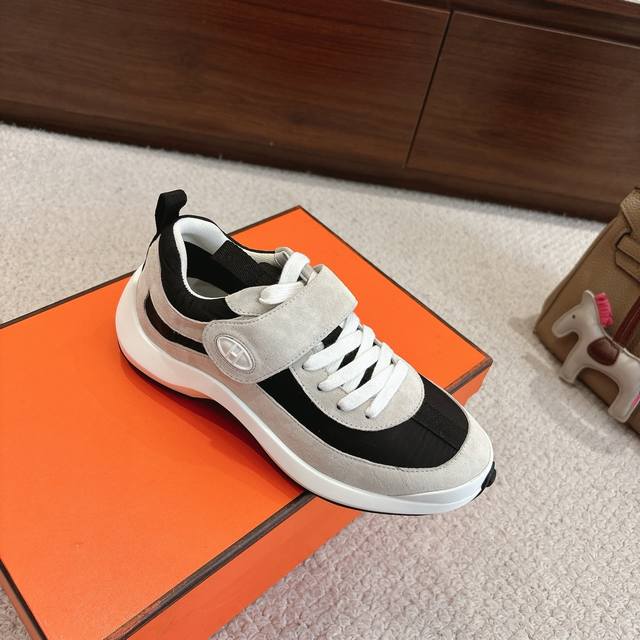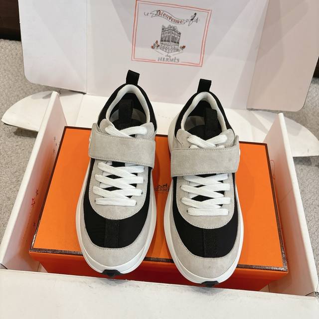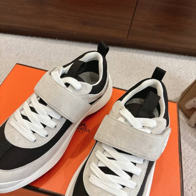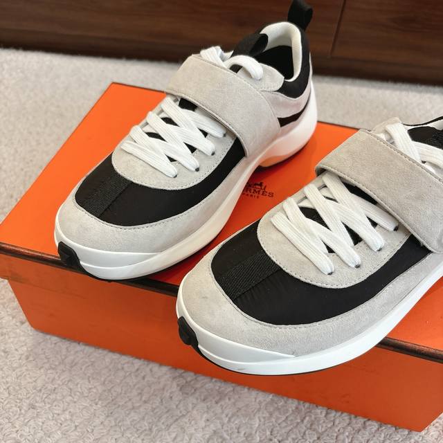 出厂价P Hermes Loop运动鞋 New Arrival~ 秋冬新款休闲运动鞋系列 鞋面是麂皮,质感温和柔顺,一看就很贵!上脚超级轻盈 鞋底独家私模一体H成型Tpr大底 码数:35-45