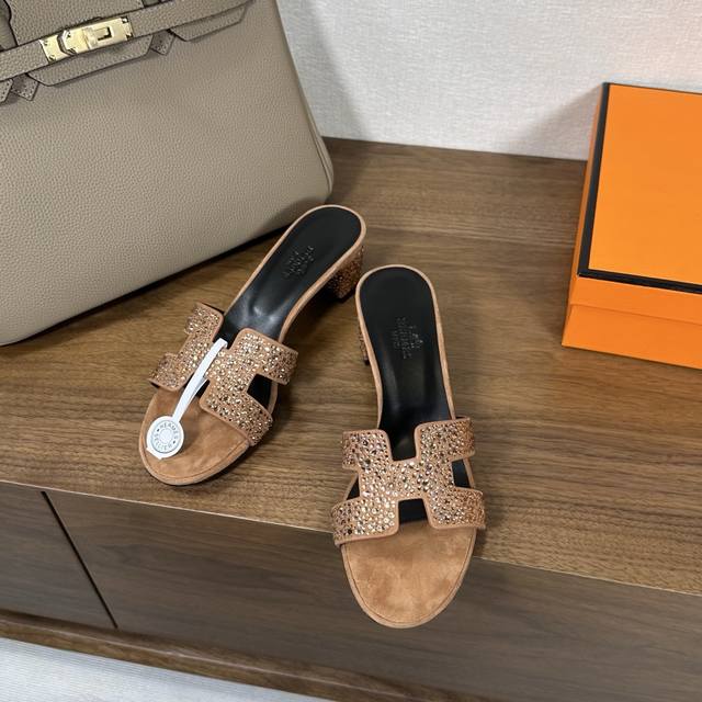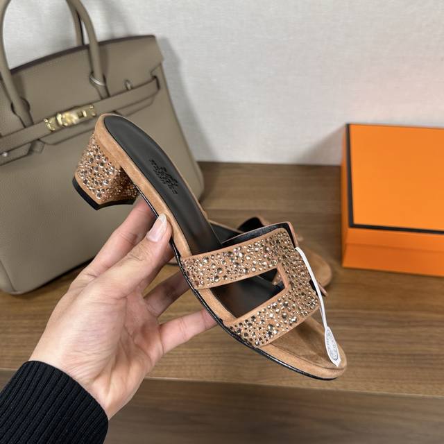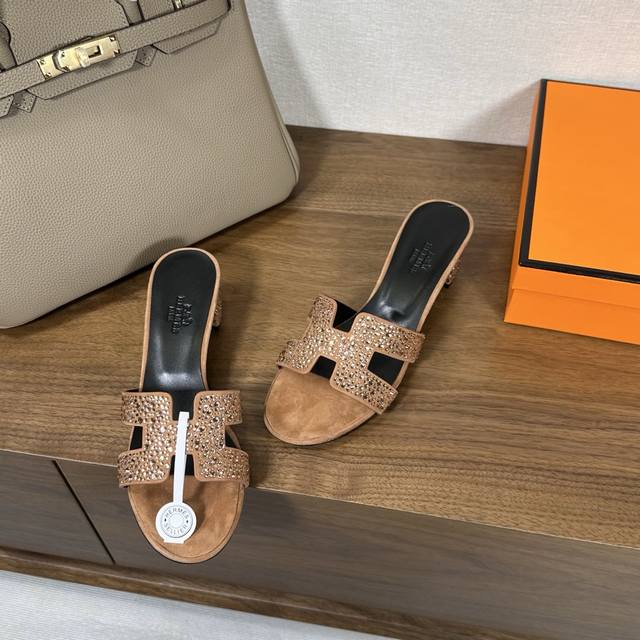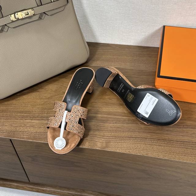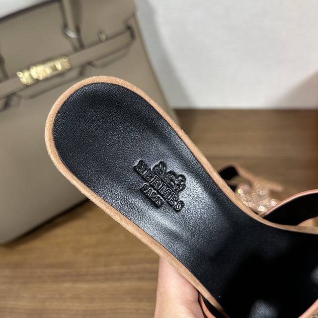 / 出厂价Pp ,大钻面Hermes 爱马仕H拖鞋Oran凉鞋系列 时尚又百搭 超级舒服 每个细节都做到极致 原版麂皮 原版1:1独家私模鞋面 原版真皮沿条大底 跟