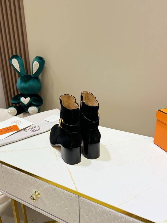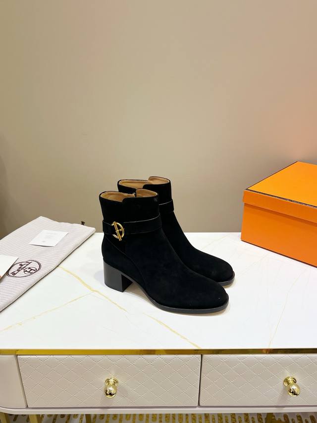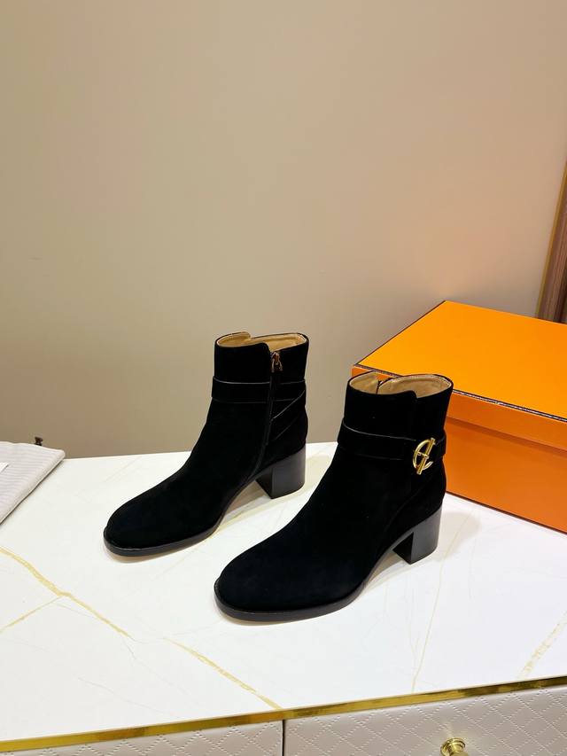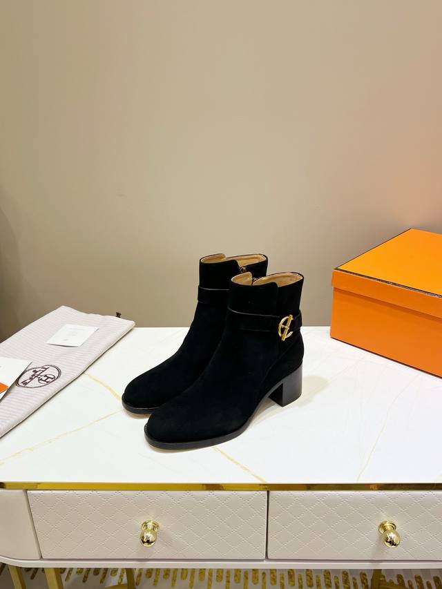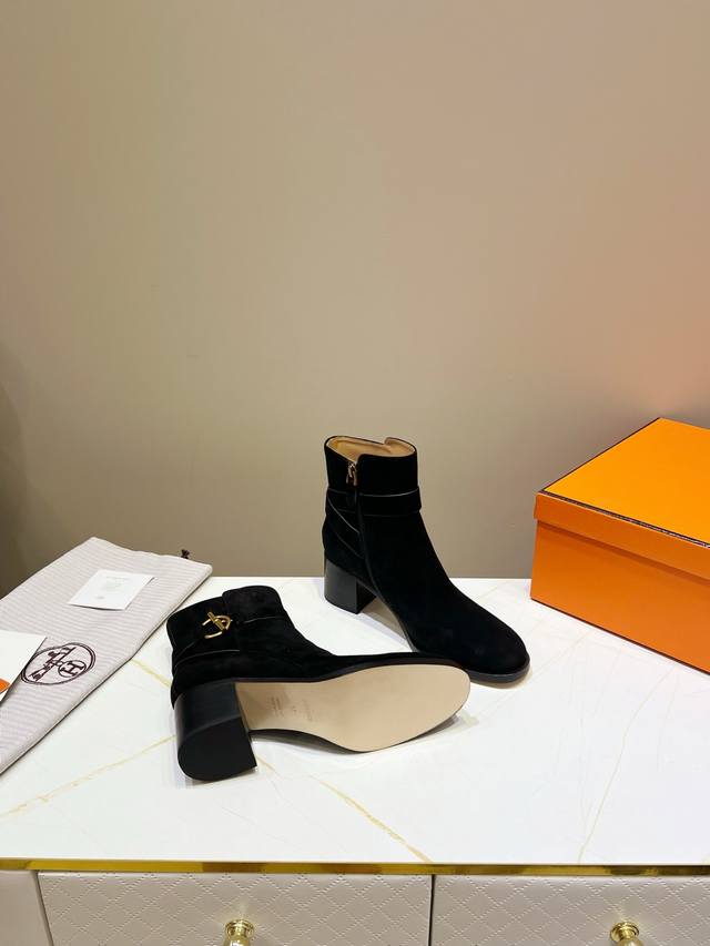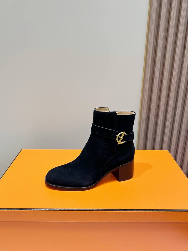 出厂价Pp: ,爱马仕经典短靴,顶级版本!原版开发 鞋面:羊京 内里:牛皮里 牛皮垫 大底:意大利真皮大底 码数:34-42 注34 41 42码定做 不退换 跟高:6Cm 包装:配置原版包装!