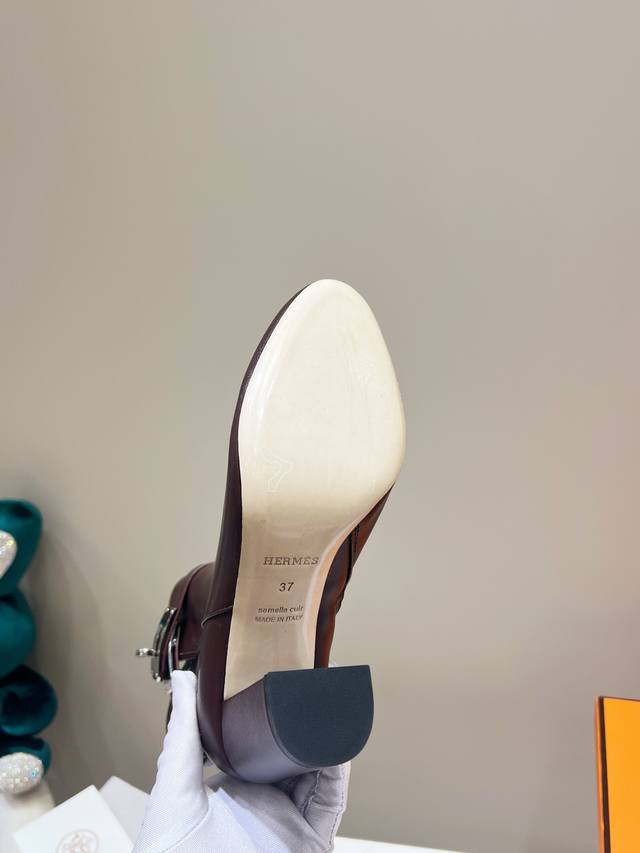 出厂价Pp: ,爱马仕Hermes,顶级版本!原版开发 鞋面:小牛皮 内里牛皮里 牛皮垫 大底:意大利真皮大底 跟高8.5Cm 码数:34-42 注 34 41 42码定做 不退换 包装:配置原版包装!