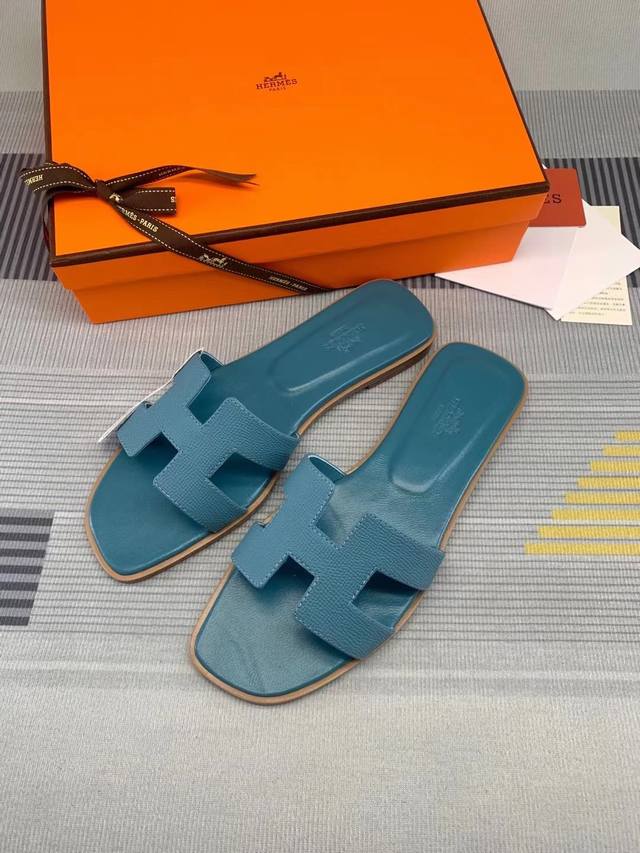 Hermes 纯进口意大利 Epsom皮 Oran凉鞋 最新升级版一体垫脚,上脚更舒适,H有历史代表作品,永恒经典款H凉拖,居家出行两不误,此鞋款是您衣柜的点睛之笔,上脚颜值超高