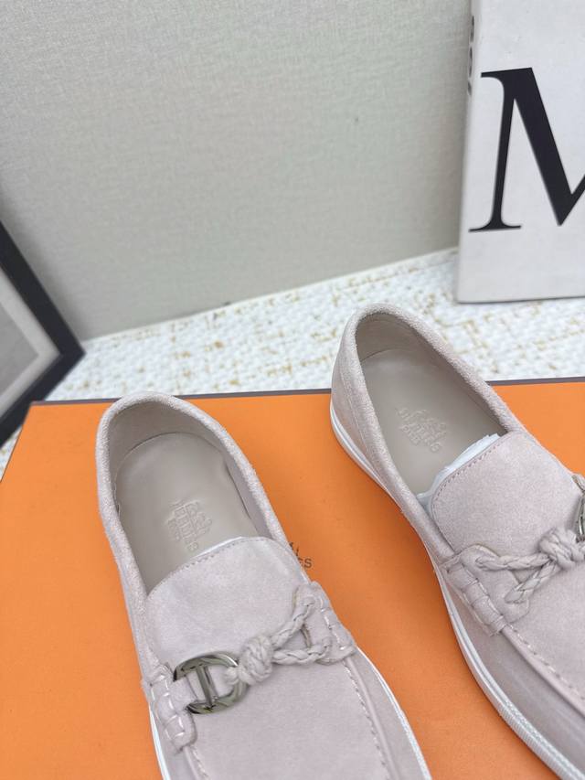 / 出厂女 男 高版本 Hermes# Lgnacio系列 情侣款 乐福鞋 休闲 运动鞋 原版购入开发 做货 这款小牛皮乐福鞋,饰有皮革编绳和“Chaine D'a