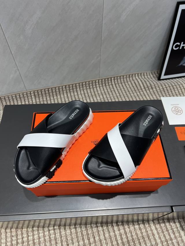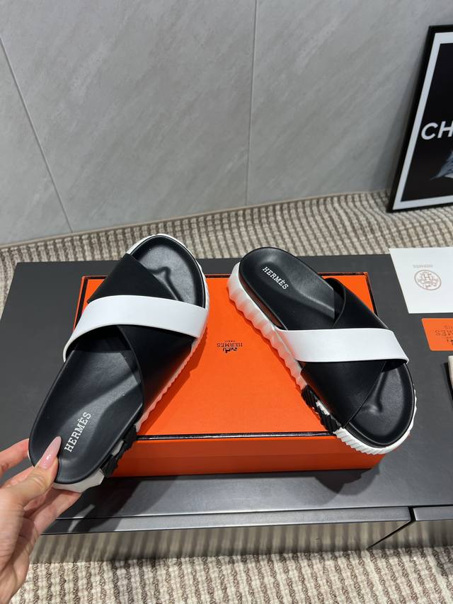 / 出厂:情侣 独家顶级版本 H家H*Erms 2025春夏新款凉拖系列 情侣沙滩凉拖 我家都是购入Zp开模调楦出货,跟Zp基本上无差上脚无敌秀气,修饰脚型,非常简