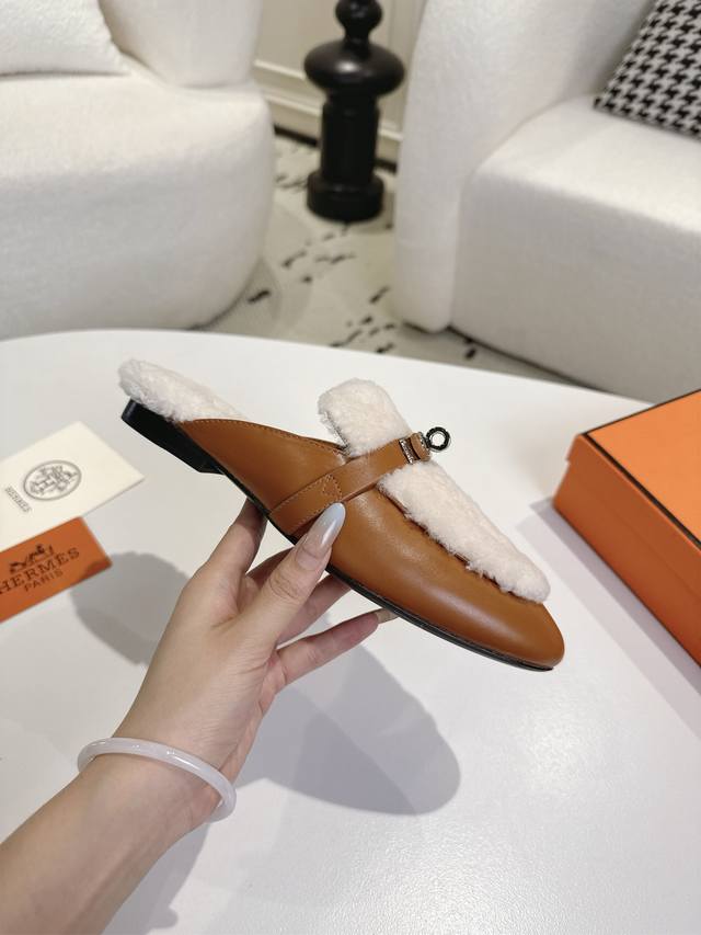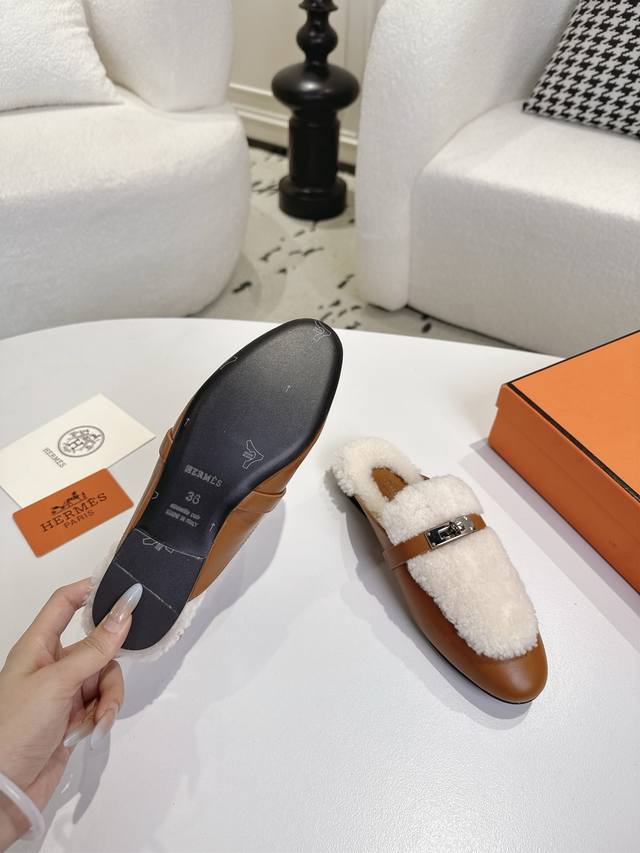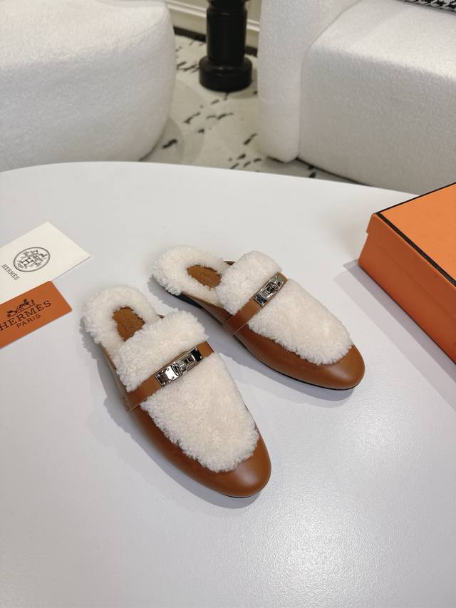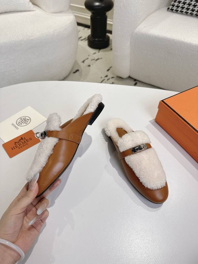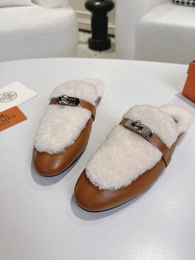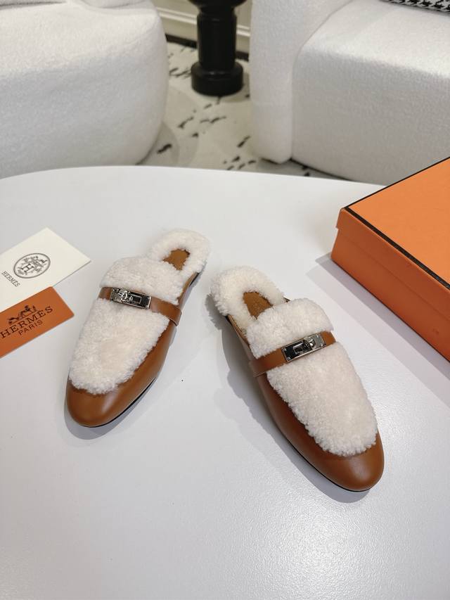 出厂 爱马仕Herme S Fw25New Arrival~ DDD H家2025秋冬高羊绒Kelly半拖 DDD 好看好穿还高级,秋冬决绝子单品 DDD 皮毛一体材质,原版意大利进口牛皮底 DDD 顶级精品35-42 40 41 42定不退不换 DDD