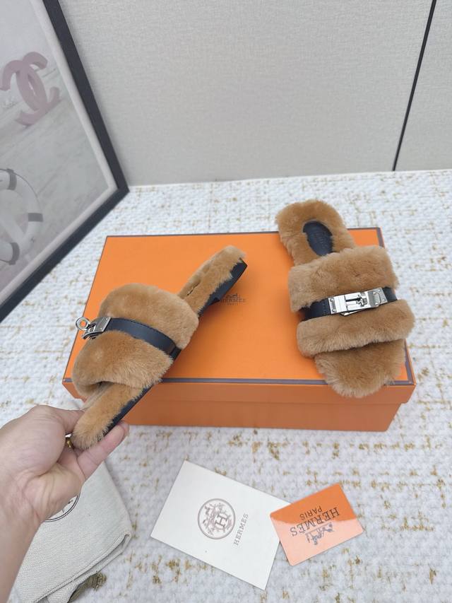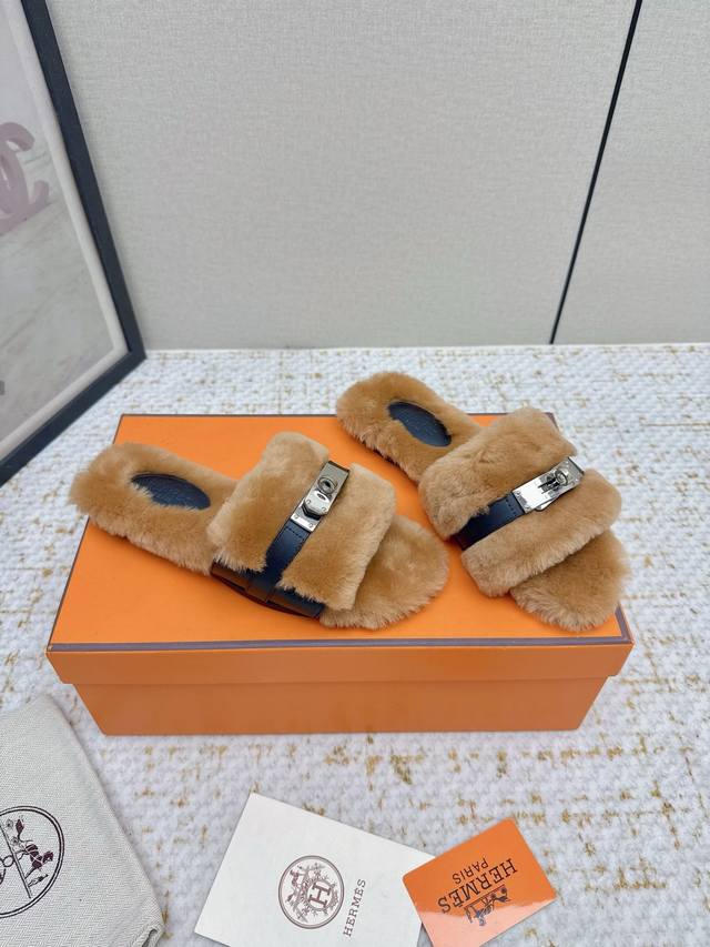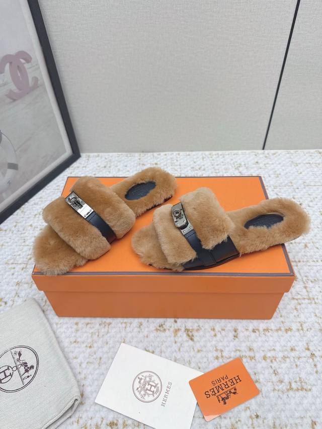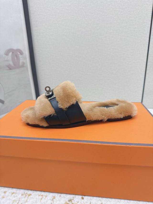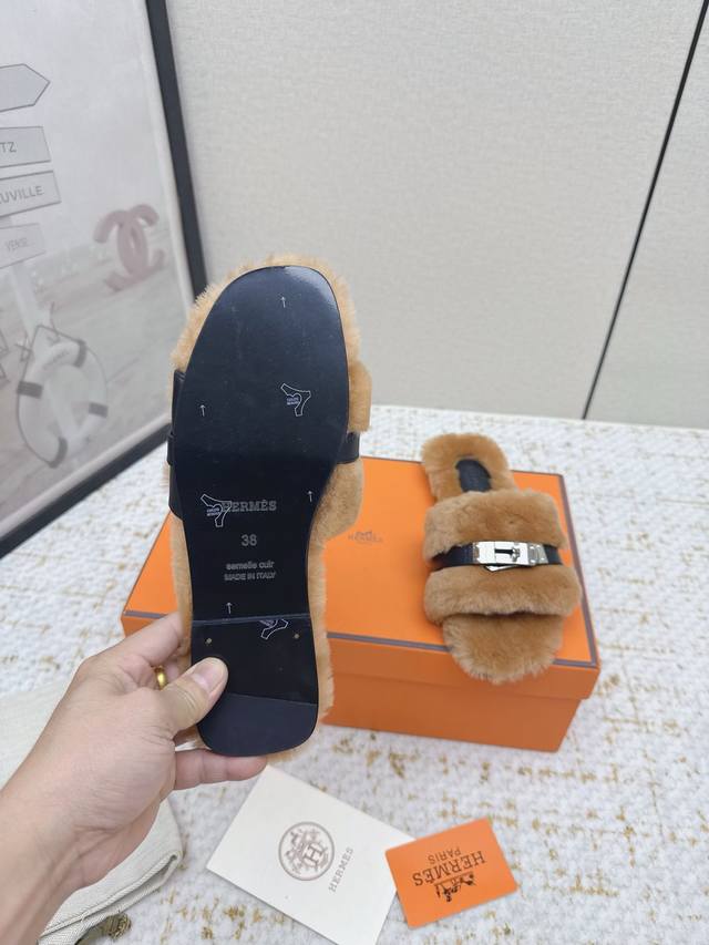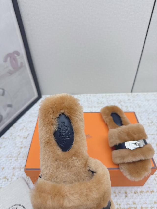 / 出厂 高版本 *爱马仕 25 最新 秋冬 皮毛一体卷糕毛二舅拖 今年面料均选用羊羔毛 ,毛茸茸的 敲可爱的,踩云脚感,光脚或者搭配个袜子穿,都时髦的不行哦 面料