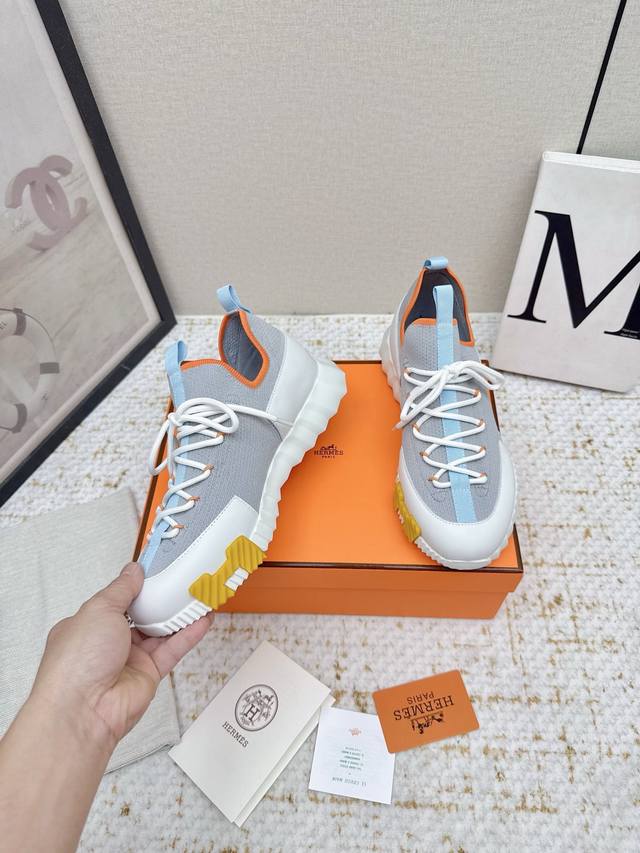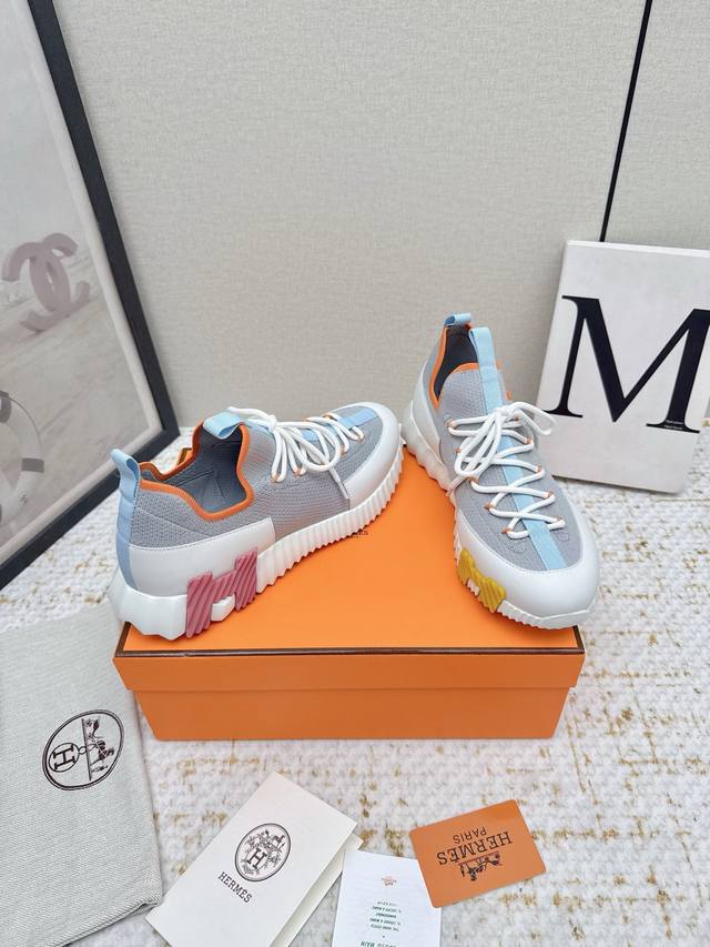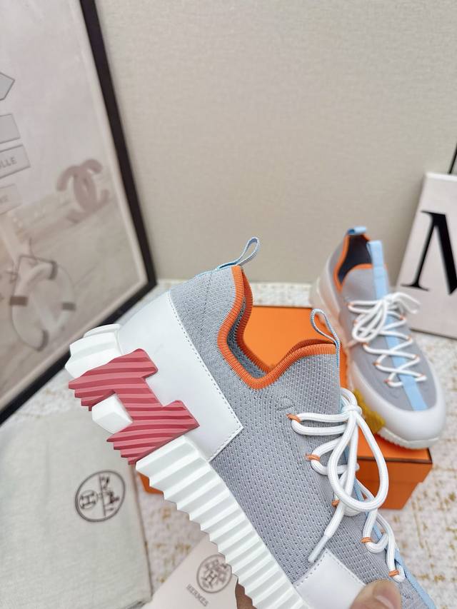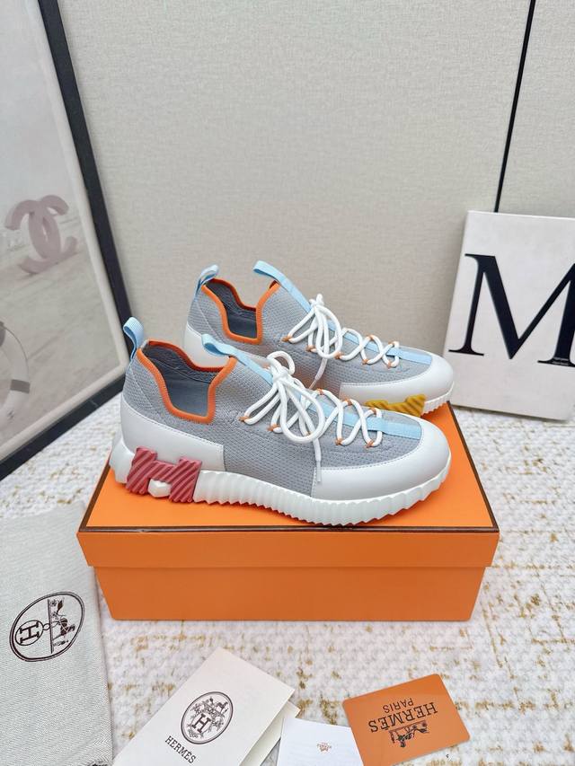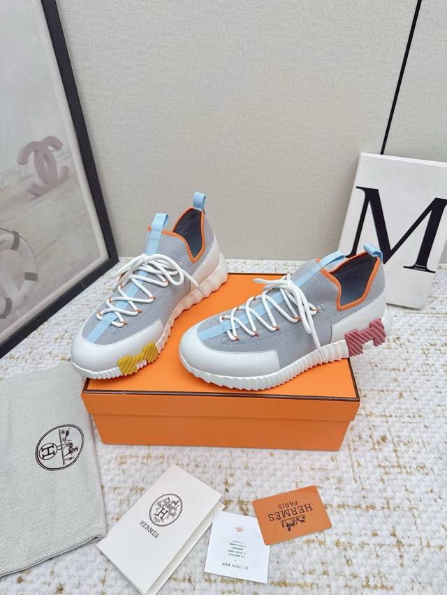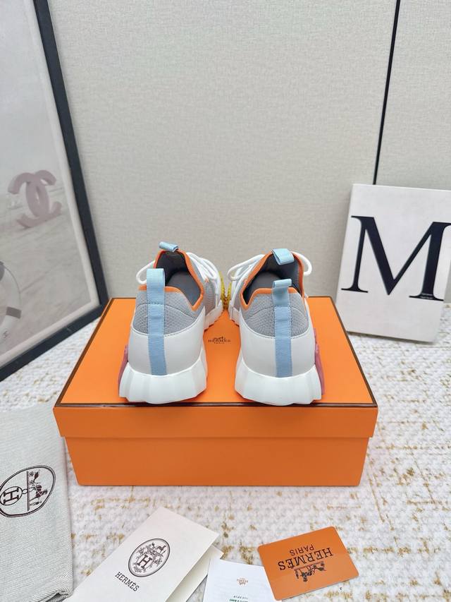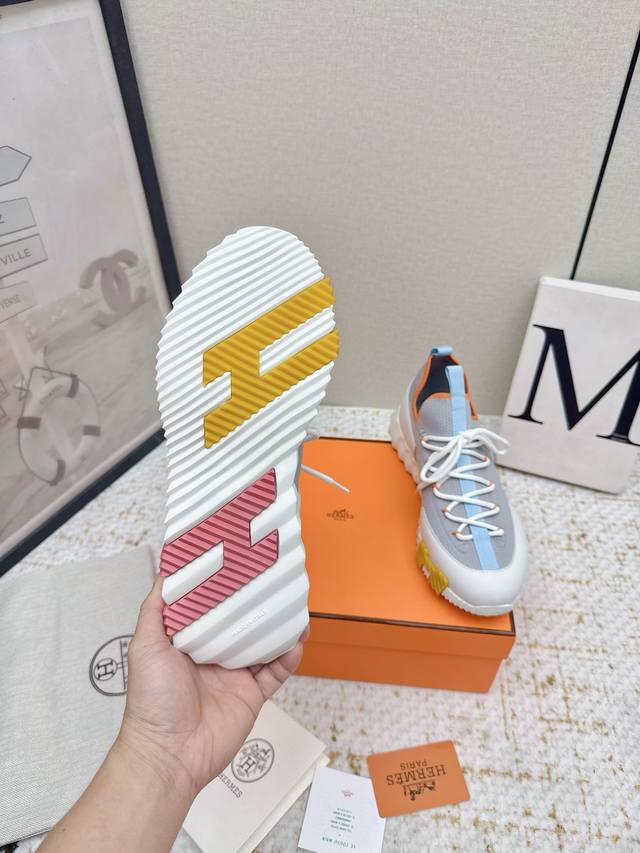 出厂 高版本 爱马仕2025爆款 情侣款 大底:采用Ip+Tpu 多色字母 德国技术照射机无缝组合 原单品质工艺 ,轻盈舒适,运动休闲两不误 面料:进口高丝光羊
