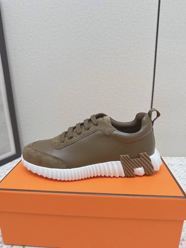 出厂 高版本 Hermes 新款 Bouncing 情侣运动鞋 爱马仕最舒服的鞋,没有之1,上脚特轻又巨好看,逛街暴走都不会累 整体麂皮手感很好,很漂亮了也很百搭衣服,很轻便舒适 轻盈无比 运动休闲两不误 踩感超棒! 30+男女款色搭配.任你挑任你选,总有你想要的~ 面料:进口高丝光羊猄+原单雨绒布 内里:进口内里鞋垫专用丝绸羊皮 大底:采用Ip+Tpu 多色字母 德国技术照射机无缝组合 码数:女35-41男38-46 女41男45.46定做不退换