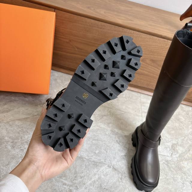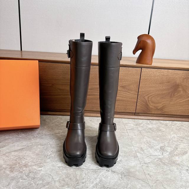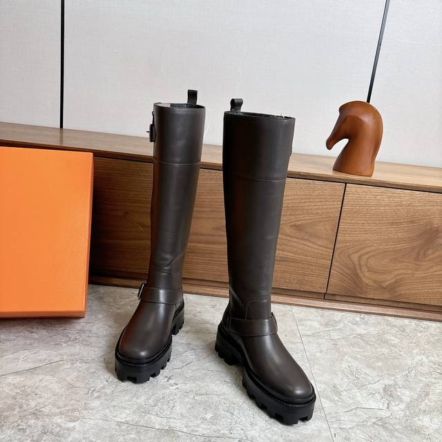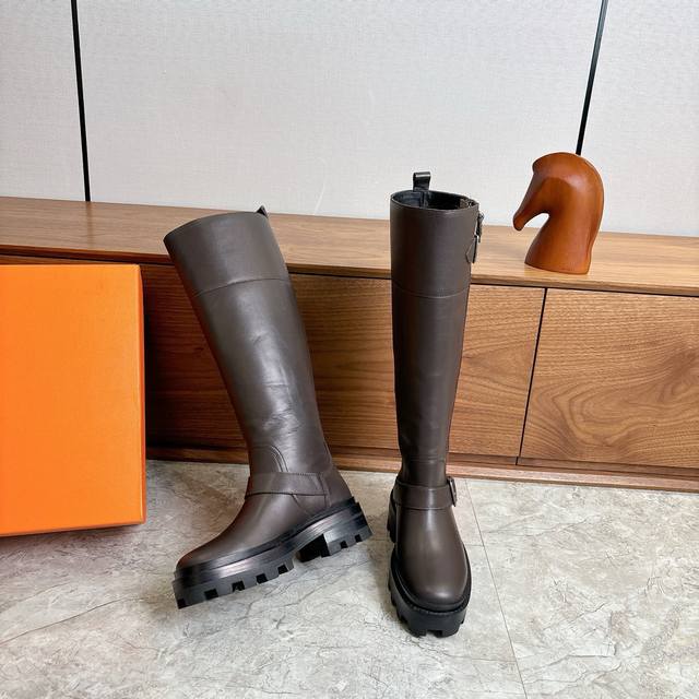 出厂 H家 秋冬新款 Hermes爱马仕经典长靴靴子专柜价格p接近2W高昂的售价自然有独特的工艺和品质这款靴子的皮料全部为进口定制,内里材质也是进口定制牛皮,好