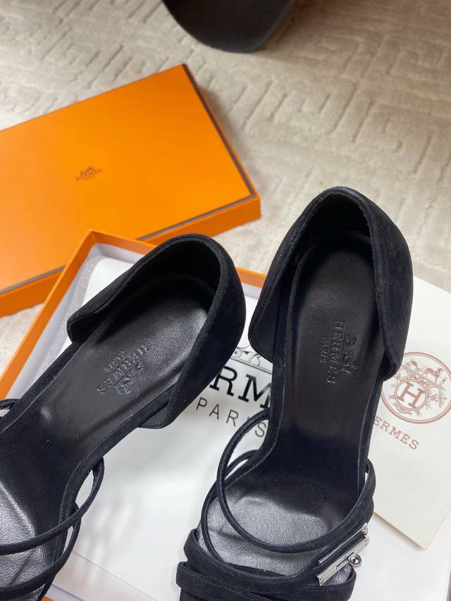 出厂 HermèS 爱马仕25Wf新品Kelly扣细带高跟凉鞋Kelly包的传奇基因邂逅夏日步履款凉鞋便成了优雅的具象化表达。标志性的旋转Kelly金属扣设计匠心打磨成为足尖的点睛之笔钯金镀层流转着低调光泽复刻品牌百年的奢华密码。纤细皮质绑带如丝带般轻覆脚背以利落剪裁勾勒出脚踝的纤细轮廓。搭配飘逸裙装时 尽显法式慵懒Kelly的优雅基因 随夏日步履不断流转。 DDD 面料:采用原版定制皮料 DDD 内里:踮脚均为混种羊皮 DDD 跟高:6.5Cm 10.5Cm DDD 鞋底:意大利A级进口真皮大底 DDD