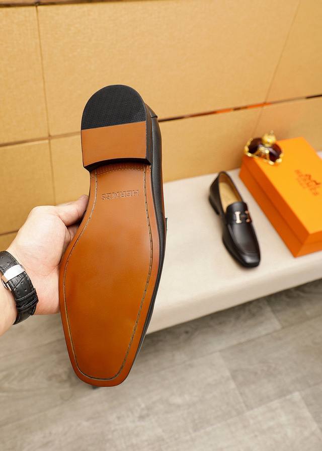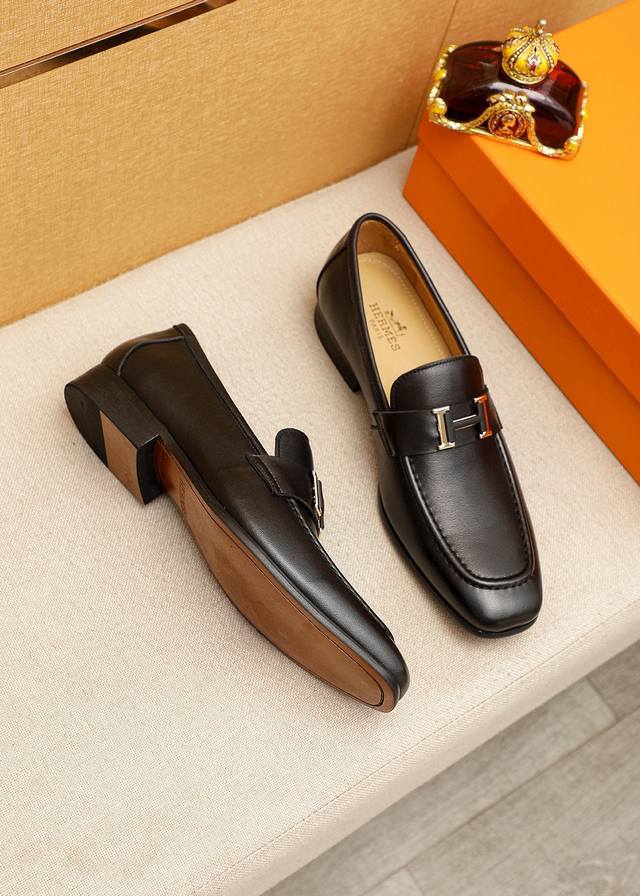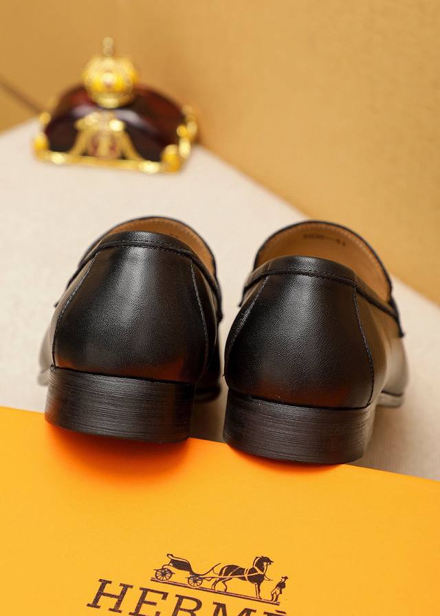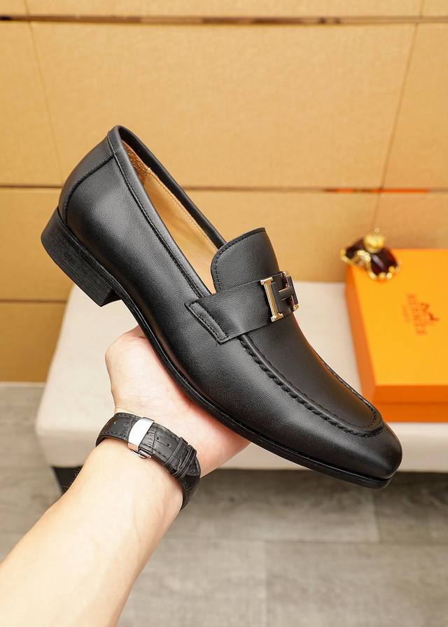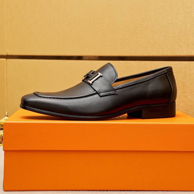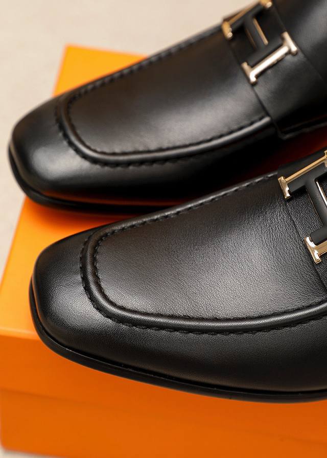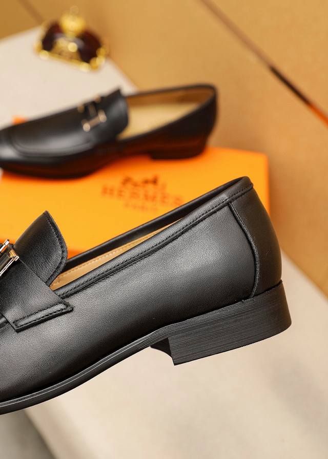 / 商品商标:Hermes 爱马仕 休闲皮鞋 正码码数: 38-44 45.46订制 商品材料:精选 进口头层小牛皮鞋面+奢华五金扣,进口水染牛皮内里。强烈立体视觉