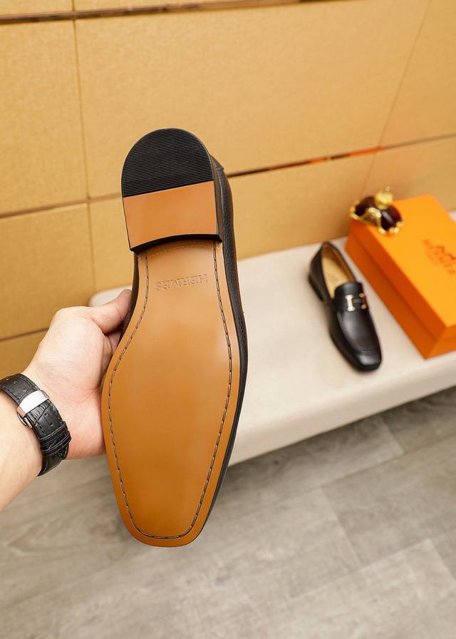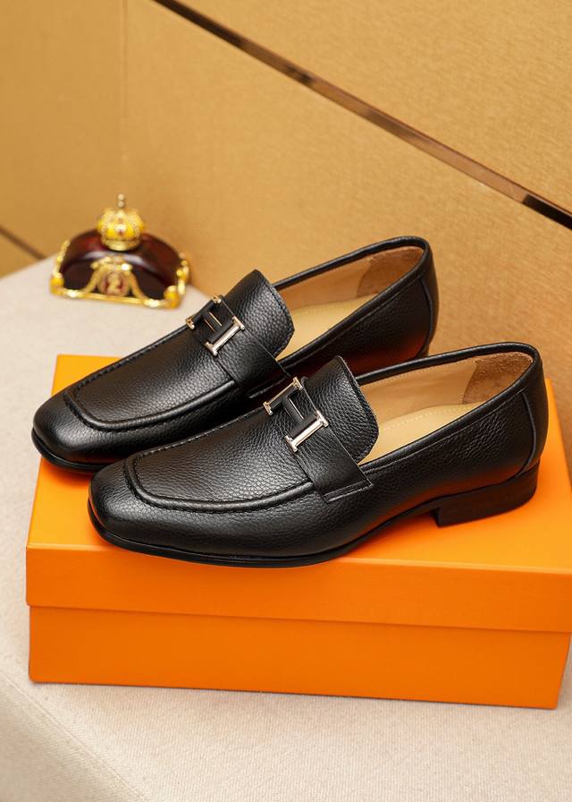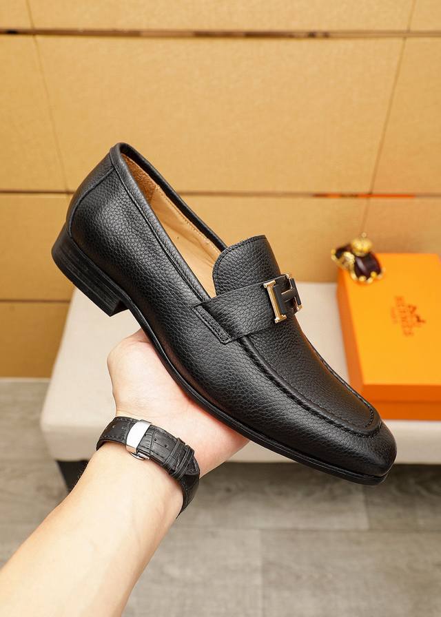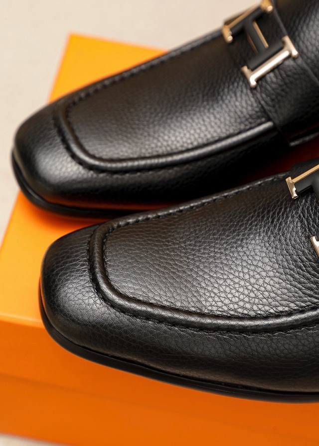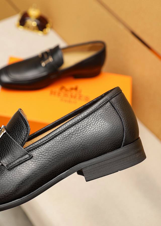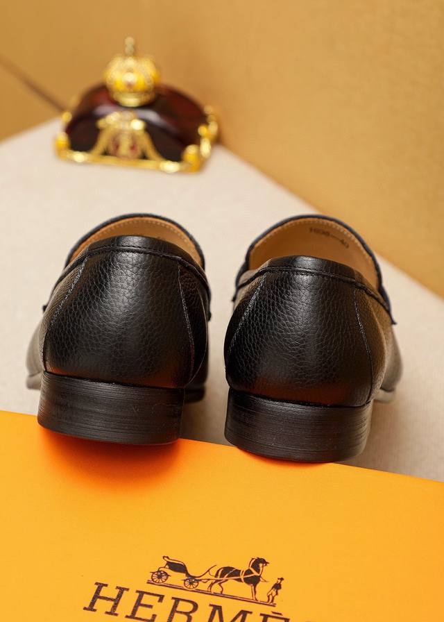 / 商品商标:Hermes 爱马仕 休闲皮鞋 正码码数: 38-44 45.46订制 商品材料:精选 进口头层荔枝纹小牛皮鞋面+奢华五金扣,进口水染牛皮内里。强烈立