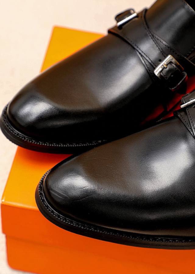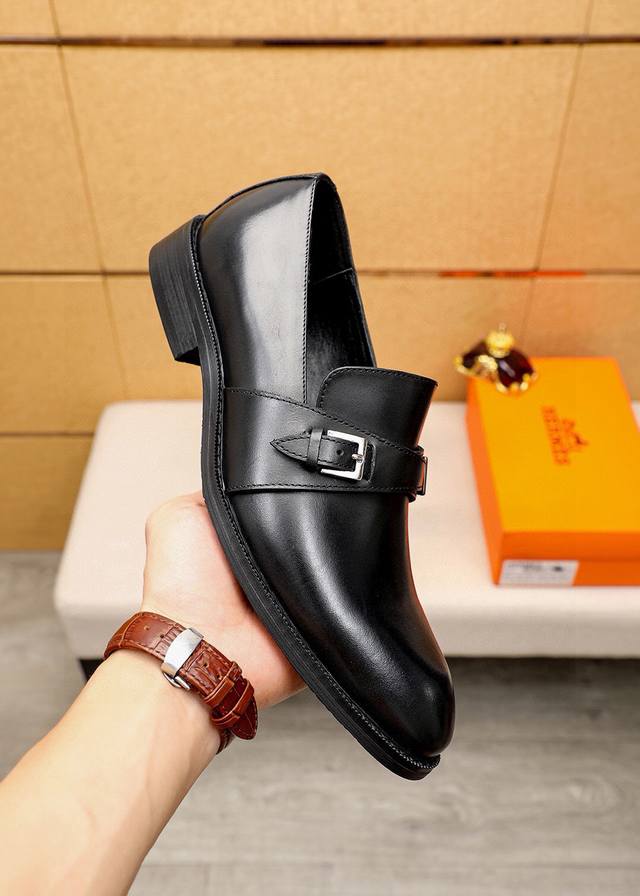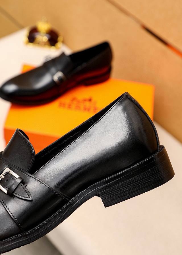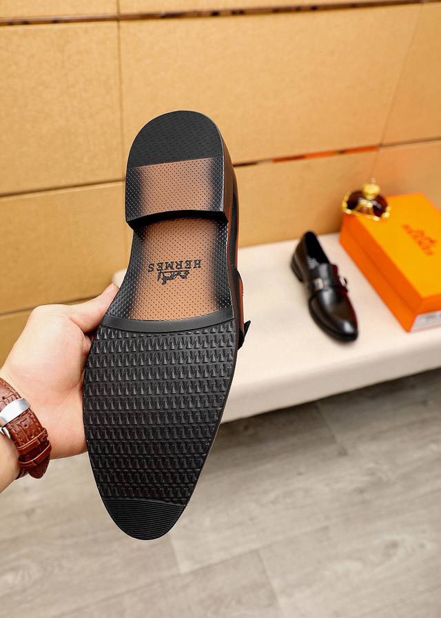 / 商品商标:Hermes 爱马仕 商务皮鞋 正码码数: 38-44 45订制 商品材料:精选 进口头层小牛皮鞋面,进口水染牛皮内里。强烈立体视觉效果,防滑耐磨组合