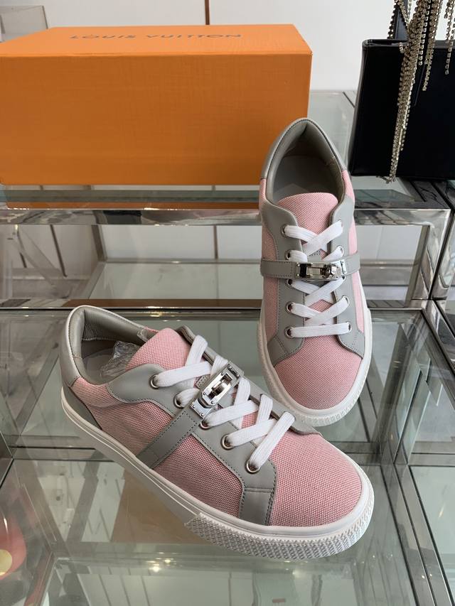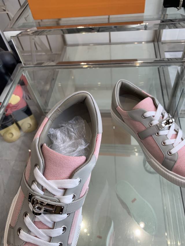 女款 男款 Hermes爱马仕 Kelly扣 乐福鞋风格 运动鞋板鞋 情侣款 顶级版本 同步专柜上新 鞋子的每一个细节都特别用心 雅致的拼接元素 时尚飞织系带方式 增添休闲的气息 打造时尚都市造型 完美契合脚型,自然的勾勒出时尚的轮廓 达到视觉上的冲击效果 充分演绎不一样的运动风格 面料进口牛皮 帆布材质内里羊京 垫脚混种羊皮原版开模Tpu 大底 码数:35-40 女40定做