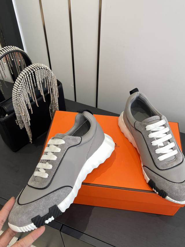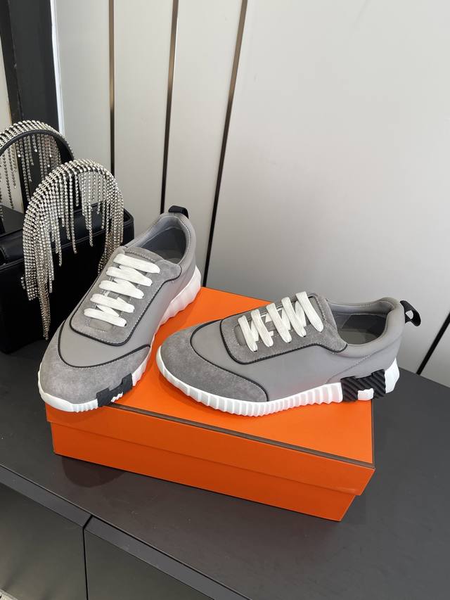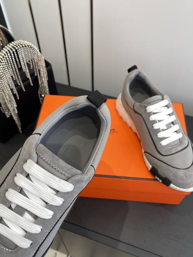 顶级版本2024ss Hermès 爱马仕 初秋新品情侣款 休闲鞋拼色设计MM风 超前时尚 简约高级 随意搭配 上脚非常轻便舒适鞋面:麂皮...