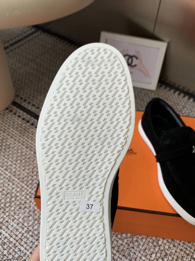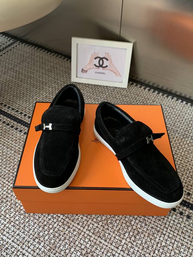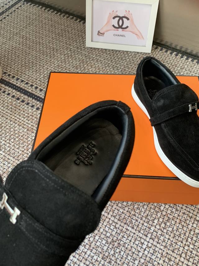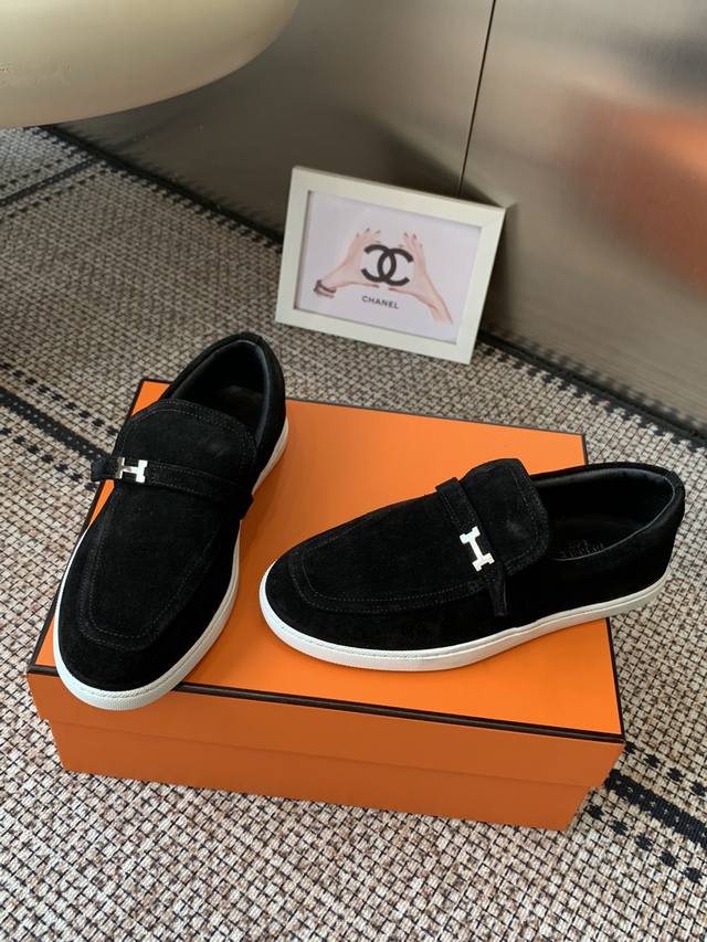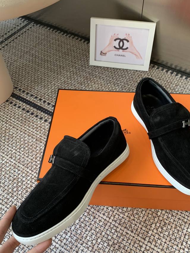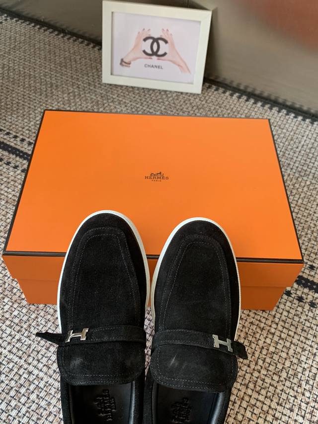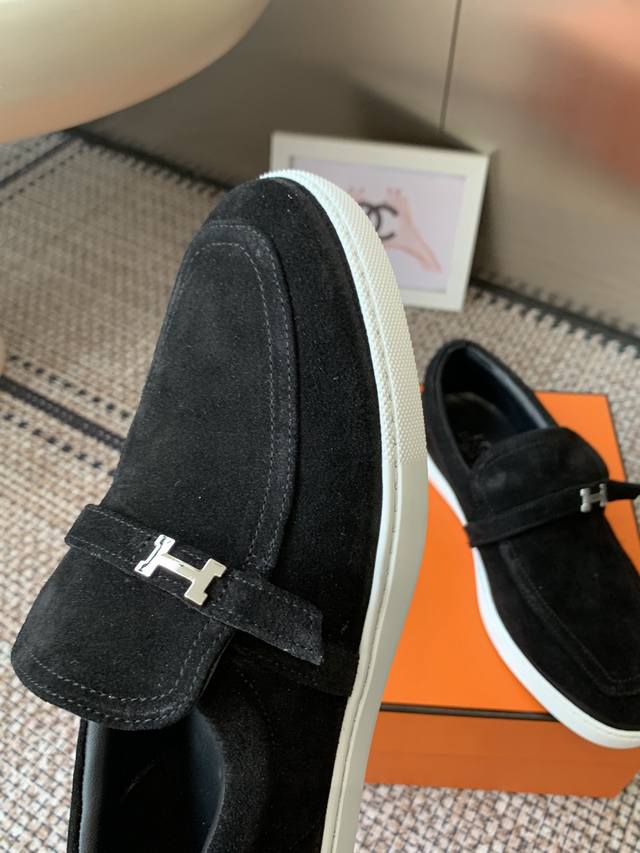 女款 男款 Hermes 爱马仕 经典H 情侣款乐福鞋 英伦复古设计 经久不衰 休闲 简约风格免系带休闲运动鞋 舒适 休闲 百搭 面料: 牛反绒 小牛皮 内里: 羊皮内里 大底: 原版开模大底 码数:35-45 女40 男45订做