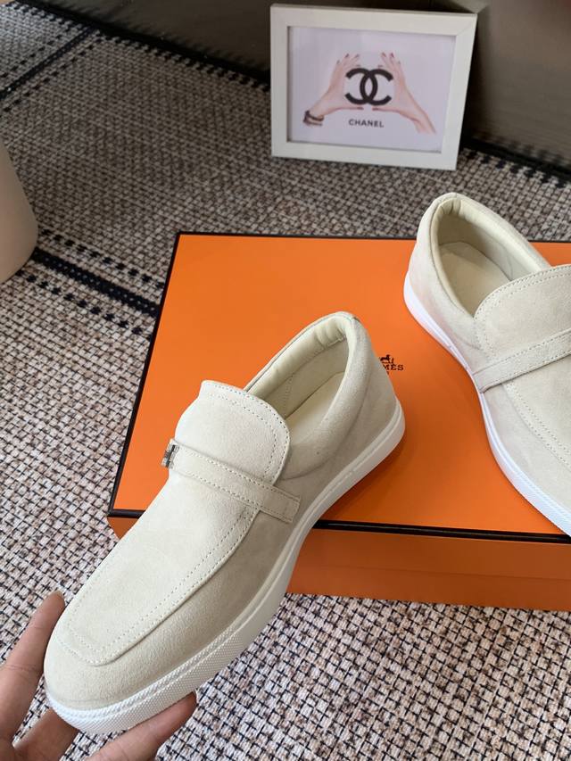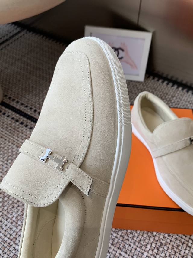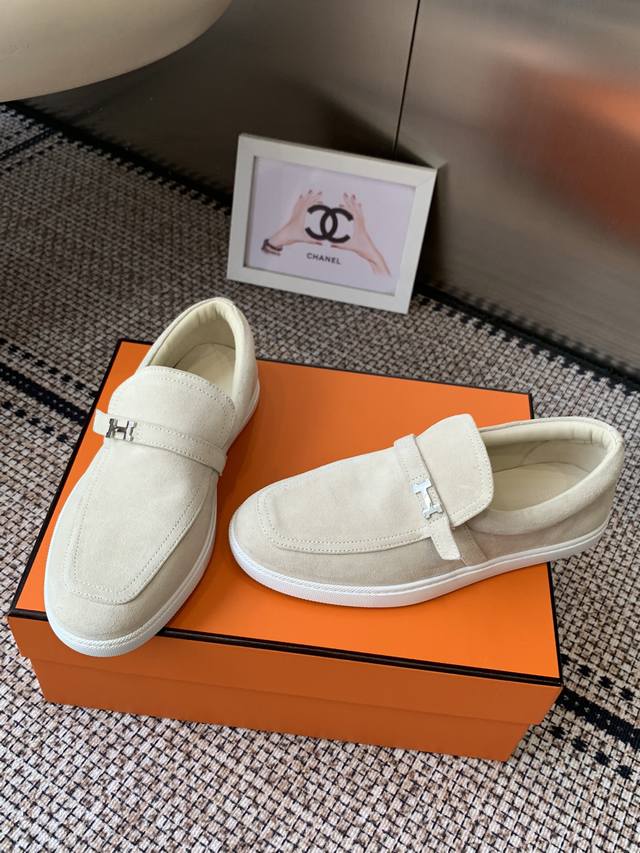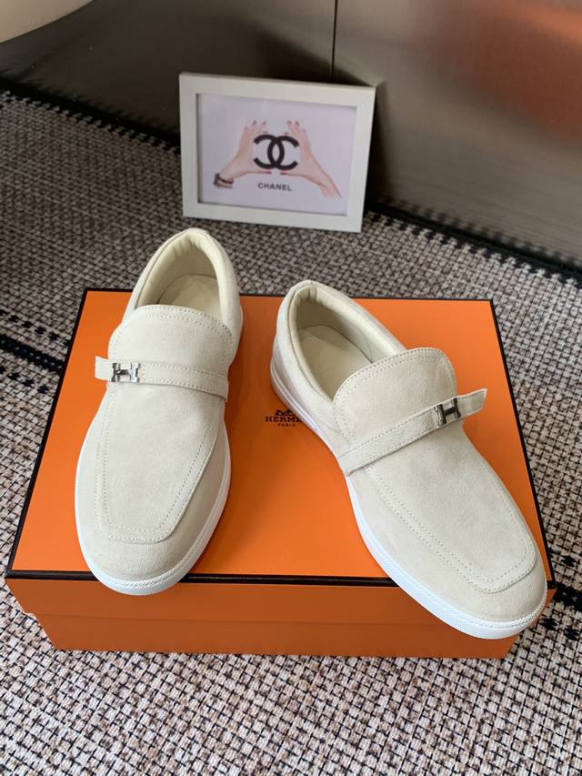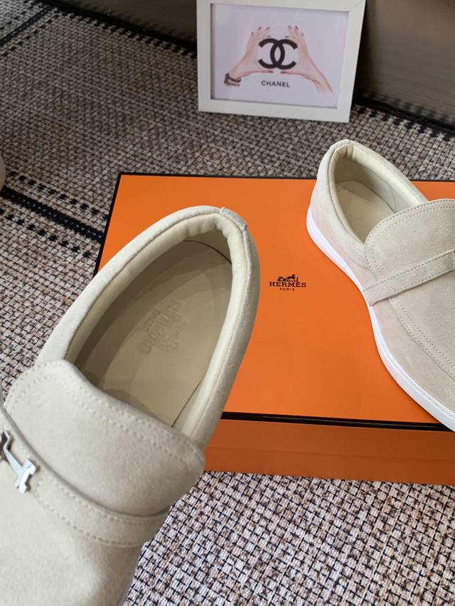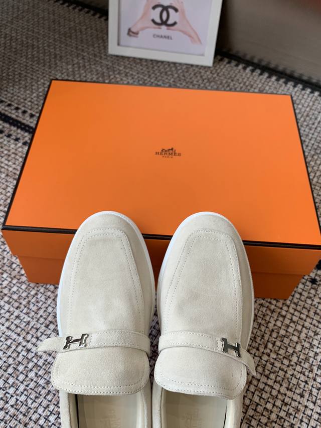 女款 男款 Hermes 爱马仕 经典H 情侣款乐福鞋 英伦复古设计 经久不衰 休闲 简约风格免系带休闲运动鞋 舒适 休闲 百搭 面料: 牛反绒 小牛皮 内里: 羊皮内里 大底: 原版开模大底 码数:35-45 女40 男45订做