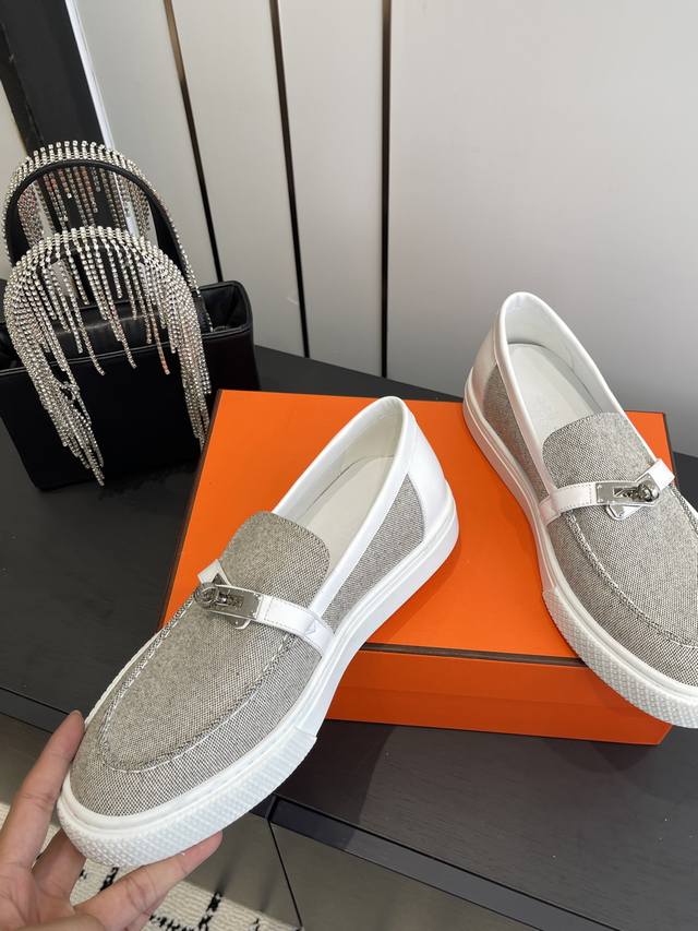 顶级版本 Ss HermèS 爱马仕 初秋新品 情侣款 休闲鞋 拼色设计Mm风 超前时尚 简约高级 随意搭配 上脚非常轻便舒适 鞋面:麂皮...