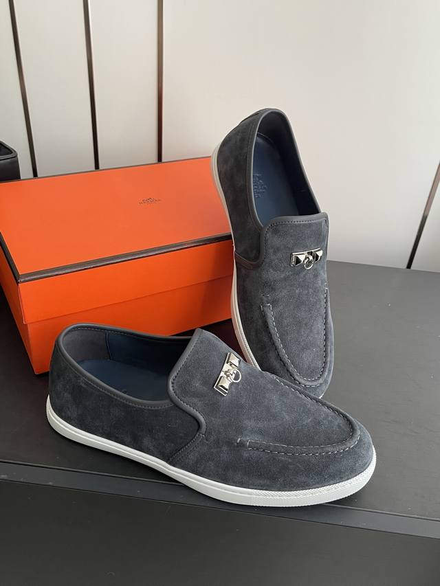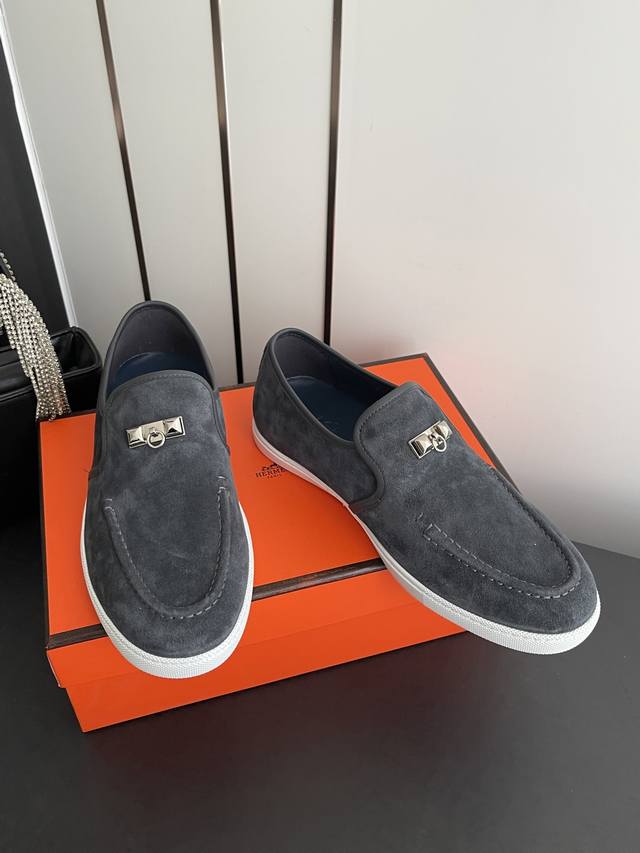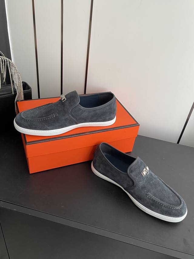 女款 男款 Hermes 爱马仕 经典H 情侣款乐福鞋 英伦复古设计 经久不衰 休闲 简约风格免系带休闲运动鞋 舒适 休闲 百搭 面料:...