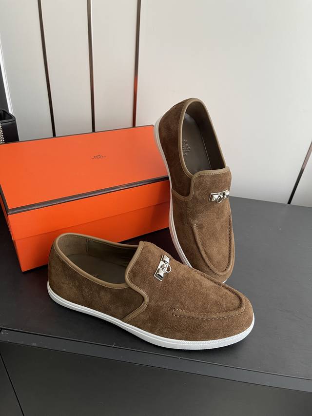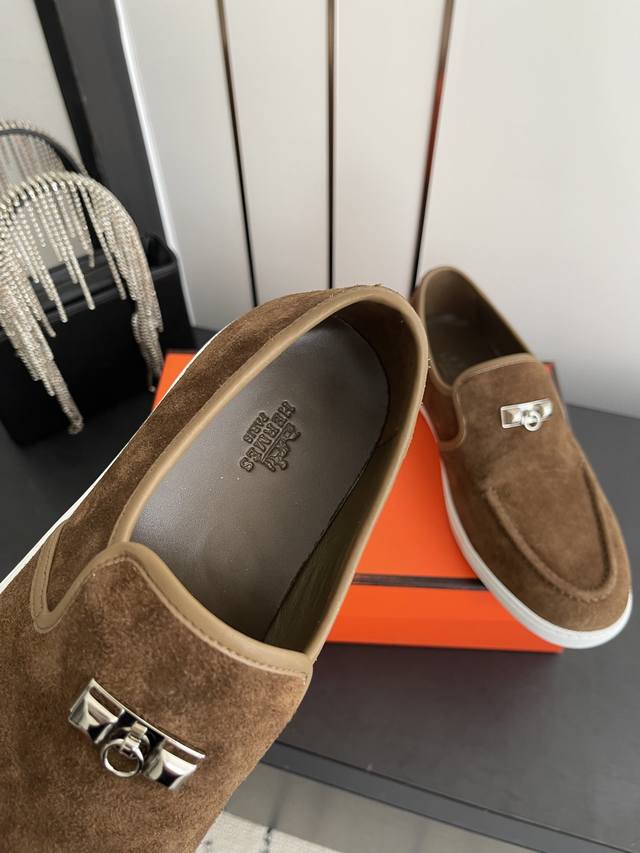 出厂价p 男女同款 Herme*新款休闲鞋 柔软舒适 神来之鞋 上脚太好看啦 闭眼入 各种穿搭都能驾驭 鞋面牛皮 内里垫脚羊皮...