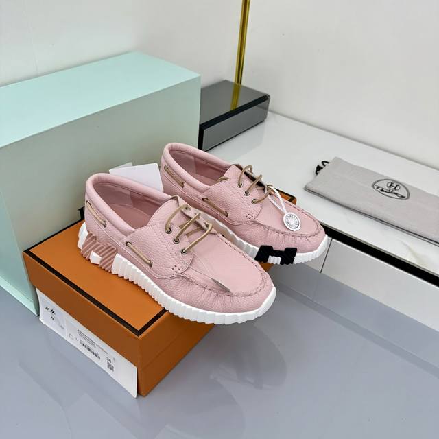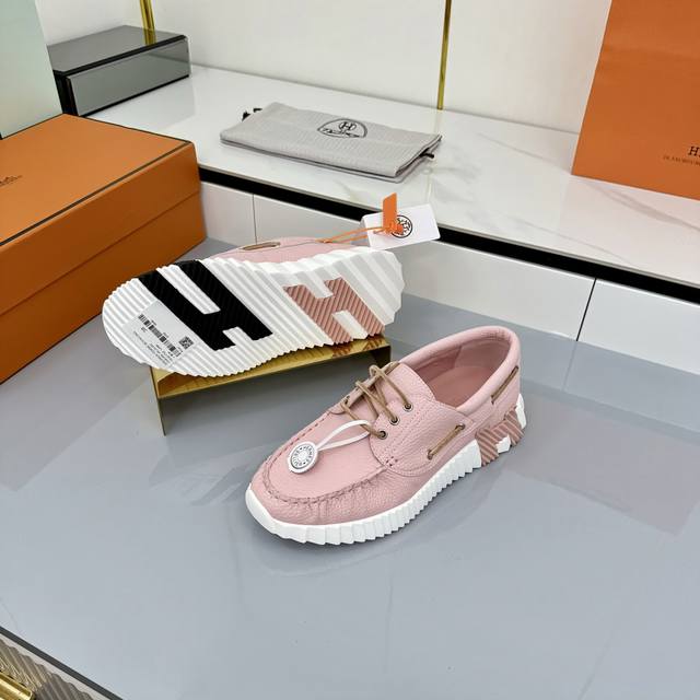 女码 男码 Hermes# Lgnacio系列 情侣款 乐福鞋 休闲 运动鞋 原版购入开发 做货 这款小牛皮乐福鞋,饰有皮革编绳和“Chaine D'ancre