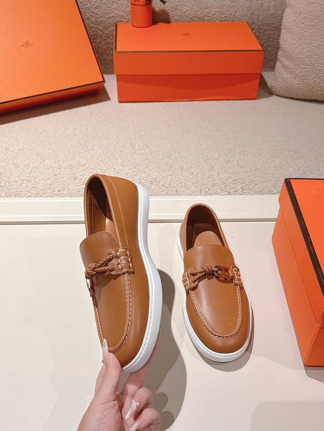 原版购入开发 做货 这款小牛皮乐福鞋,饰有皮革编绳和“Chaine D'ancre”鞋扣 时尚航海风格乐福鞋,是陆地和海滨的理想选择